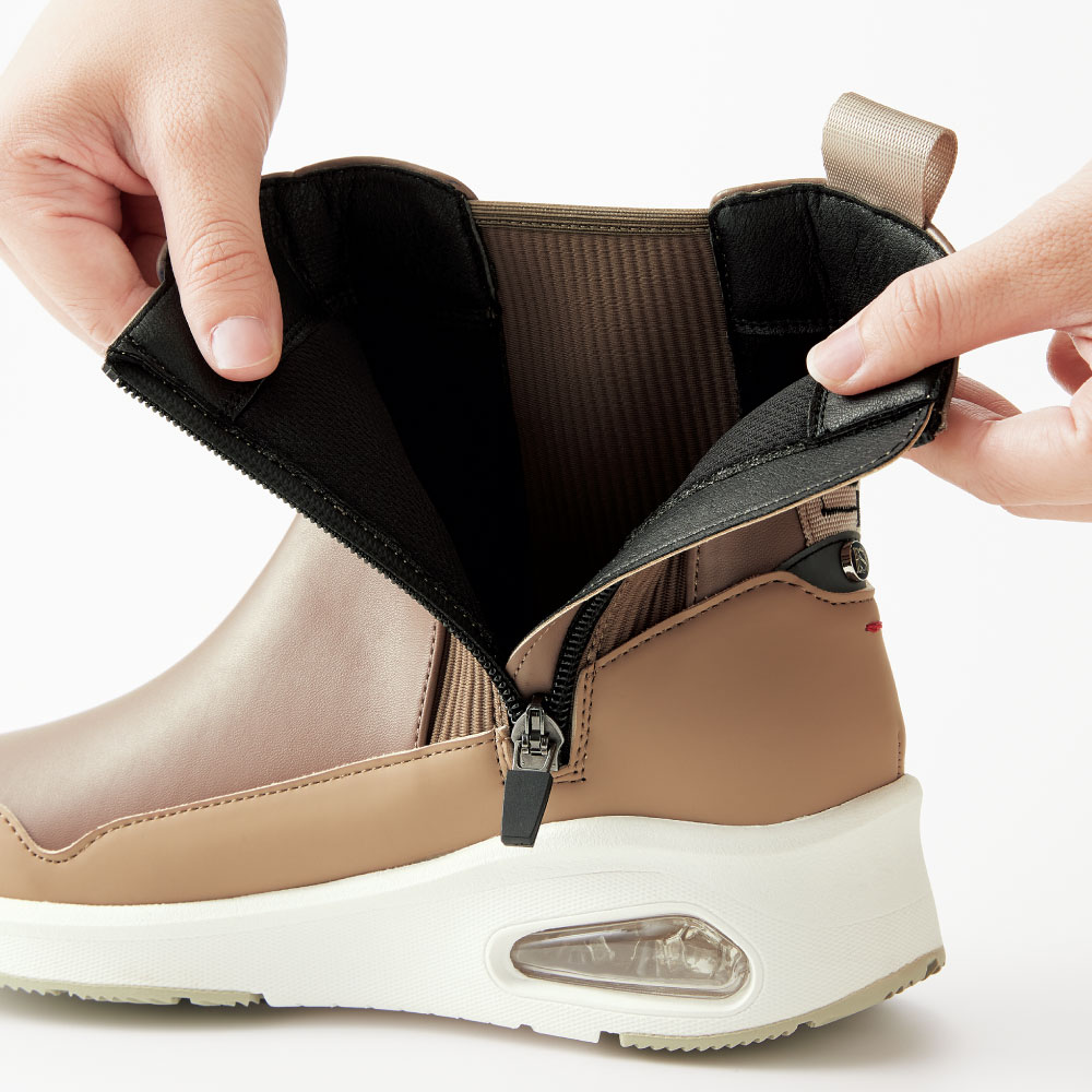 Good Point! 内側ファスナーで、履き口が大きく開きます。