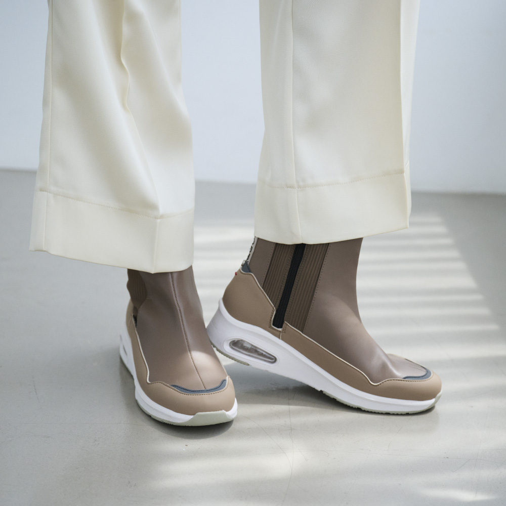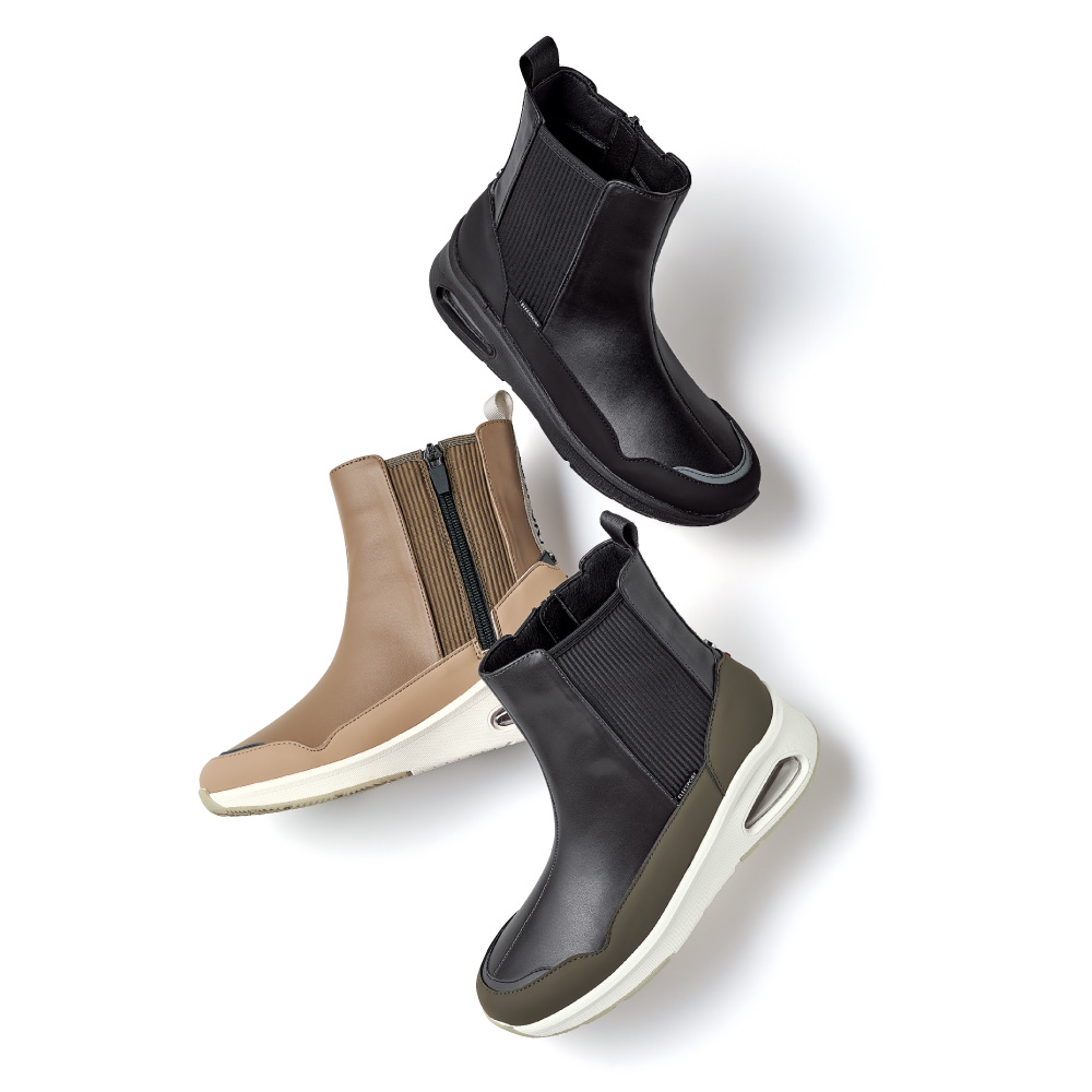 快適&おしゃれで大人も満足の一足。機能性と実用性を備えたトレンド感のある靴が得意なエルスポーツの新作です。防水・耐滑で雨の日も活躍するハイカットスニーカーは内側ファスナーで履き口も広く、着脱も簡単。エアが入ったソールで足裏への衝撃も吸収します。