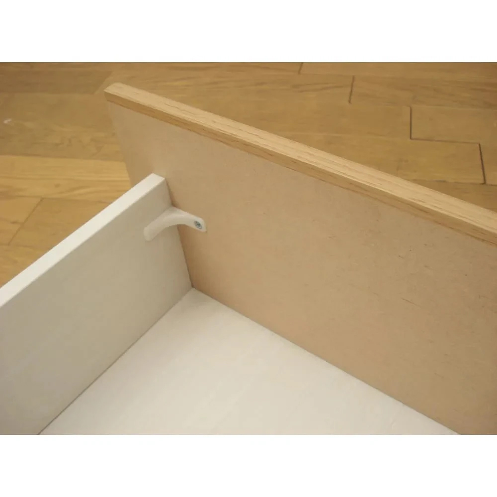 引き出しを抜いた状態。引き出し間に補強板で強度アップ。さらに引き出し間のすき間をふさいでホコリを入りにくくします。
