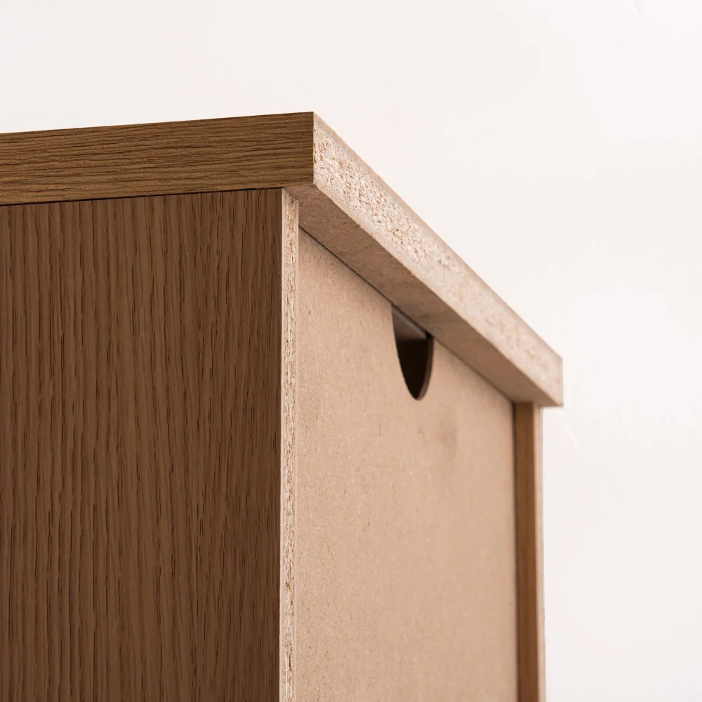引き出しを抜いた状態。引き出し間に補強板で強度アップ。さらに引き出し間のすき間をふさいでホコリを入りにくくします。