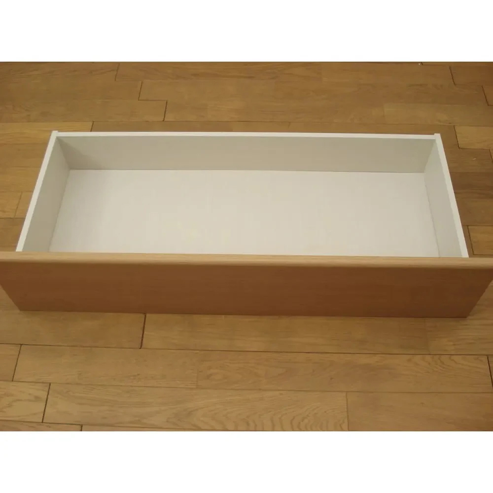 引き出しを抜いた状態。引き出し間に補強板で強度アップ。さらに引き出し間のすき間をふさいでホコリを入りにくくします。
