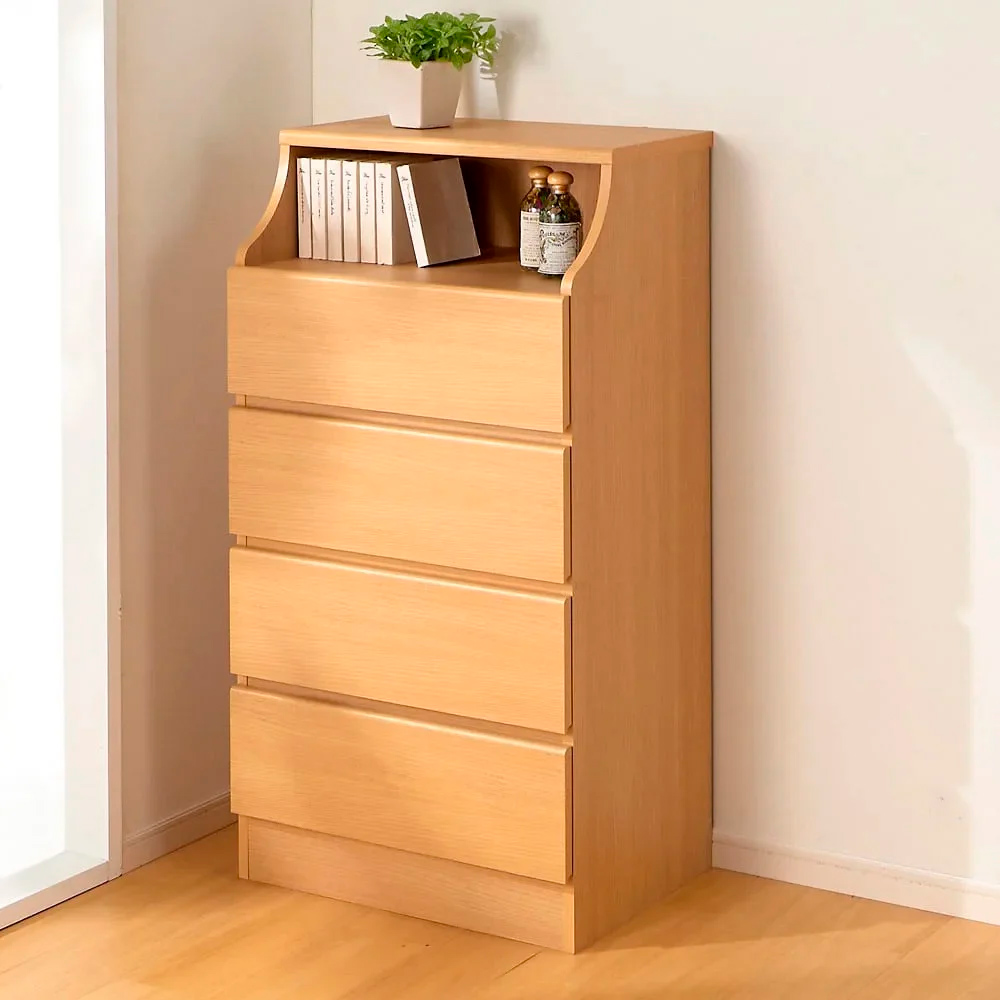 探していた「ぴったりサイズ」が見つかる!お部屋に合わせてクローゼット収納として、子供部屋やリビング収納として選べる衣類収納家具。収納を増やしたい場所のスペースや雰囲気に合わせて自由に選べるタンスです。いろんなシーンで使える、サイズ豊富なチェストホワイト(木目)左:4段・幅90cmタイプ、右:4段・幅60cmタイプ収納を増やしたい場所のスペースや雰囲気に合わせて、自由に選べるタンスです。リビング、寝室、子供部屋、プライベートルーム、クローゼットやウォークインクローゼットの内部など様々な場所で活躍。廊下やソファサイドなどで電話台、小型TV台としても使えます。チェスト4段タイプ(高さ112cm幅60cm)お届け商品幅は44cm・60cm・90cmの3種類、高さは3段(91cm)、4段(112cm)の2種類、計6種類のサイズをご用意。インテリアに馴染む3色左からホワイト木目3段・幅44cm、4段ナチュラル4段・幅90cm、ダークブラウン4段・幅60cmホワイト(木目)・ナチュラル・ダークブラウンの3色をご用意。壁や床、扉の色に合わせたり、他の家具とコーディネートすることで、お部屋に統一感と調和をもたらします。ちょっとした作業にも使えるオープン棚ホワイト(木目)左:4段・幅90cmタイプ、右:4段・幅60cmタイプ天板下のオープン棚は、洋服をたたむ作業などにも使える空間。たたんだ服をそのまま引き出しにしまえて便利です。見せる収納と使いやすさを両立ダークブラウン 左:4段・幅60cmタイプ、右:4段・幅90cmタイプ天板上は、観葉植物やインテリアを置く飾り棚として使えます。出し入れしやすいオープン棚はよく使う物の置き場に。開閉スムーズな引き出し引き出しはストッパー付きスライドレールで開閉がスムーズ。手を掛けて引き出す、スッキリデザイン。家電も置ける、背面にコード穴付きオープン部背面にコード穴付き。オープン部は背面からコードが通せるので充電器や生活家電も置けます。 ※オープン部の内寸奥行は37.6cm 天板のせり出しによって背面に隙間が確保されているため、コードを通しても壁に寄せて設置できます。さらに幅木があっても壁にぴったり寄せることが可能です。サニタリー収納を増やしたいときにナチュラル 3段・幅44cmタイプ洗面所で使うアイテムをまとめて収納。ちょっとした作業台になるのも嬉しいポイントです。ベッドサイドの小物置き場にナチュラル 4段・幅44cmタイププロジェクター台にして寝室で動画観賞も。お手頃価格の理由は「簡単組み立て式」ホワイト木目 左:3段・幅44cmタイプ、右:3段・幅60cmタイプ価格をおさえるため、組立式を採用。簡単組立なので、力の必要なダボの取り付けや、面倒なスライドレールの取り付けは済んだ状態でお届けします。組立時間を少しでも短縮できる工夫を取り入れているので、比較的簡単に組み立てられます。