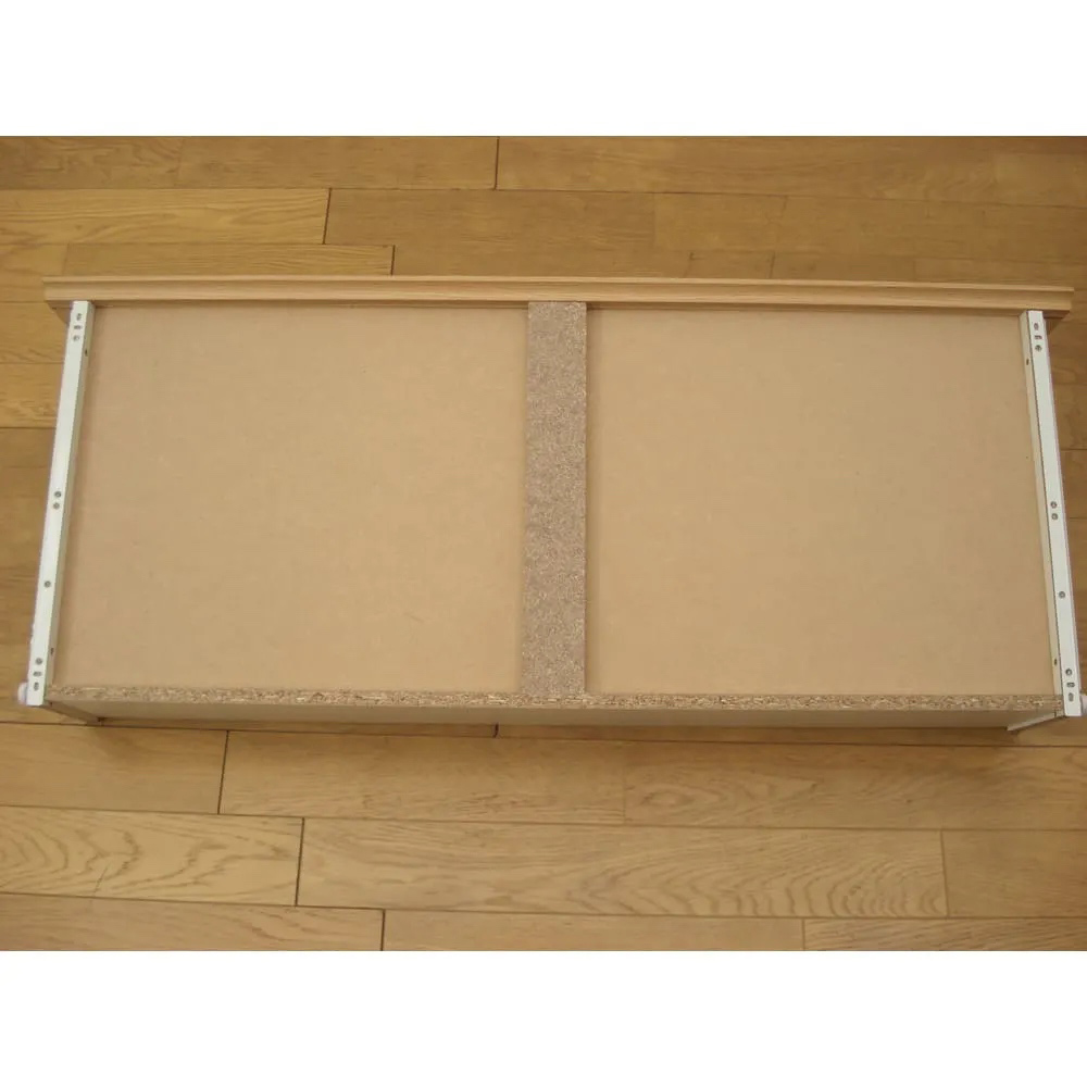 引き出しを抜いた状態。引き出し間に補強板で強度アップ。さらに引き出し間のすき間をふさいでホコリを入りにくくします。