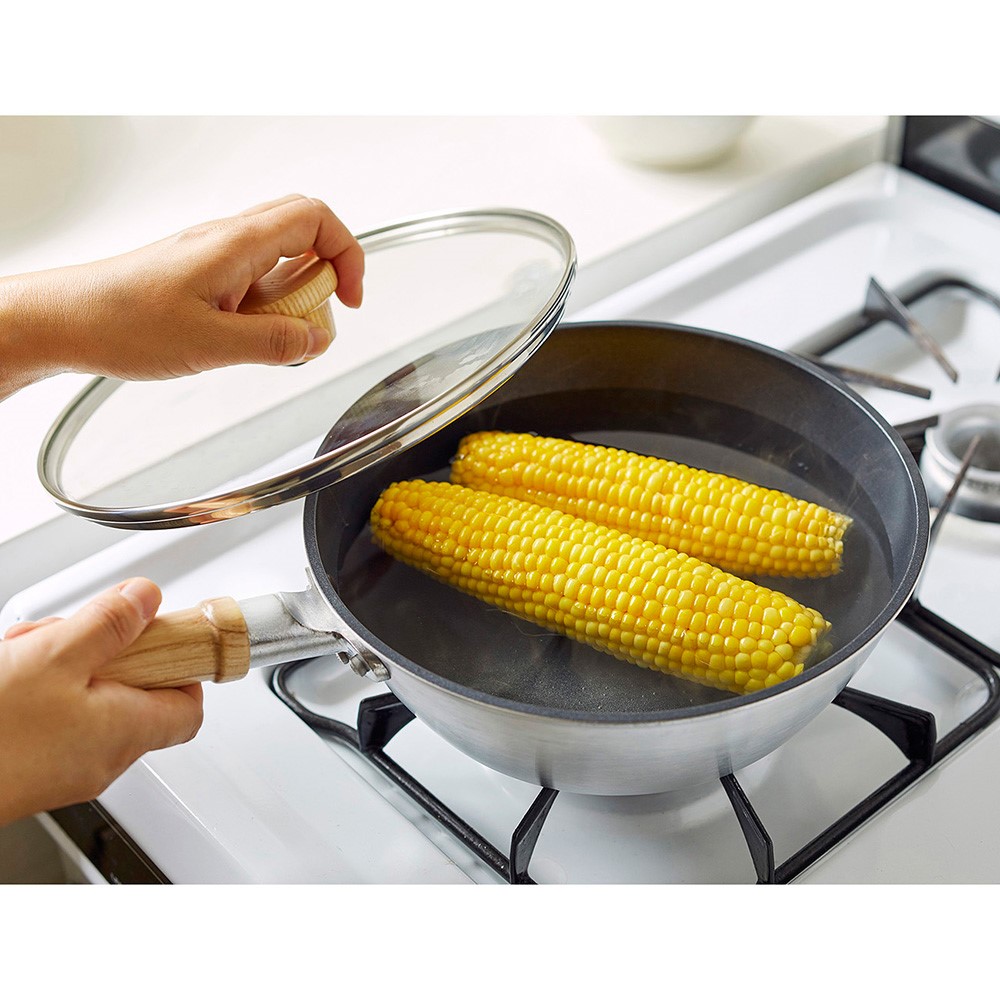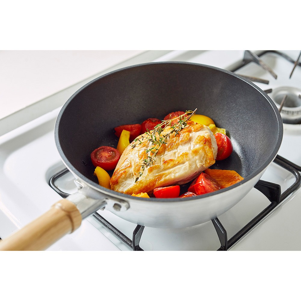 深さがあり、底面が広い形状。炒め物だけではなく、煮物・揚げ物・炊飯もできるマルチディープパン。