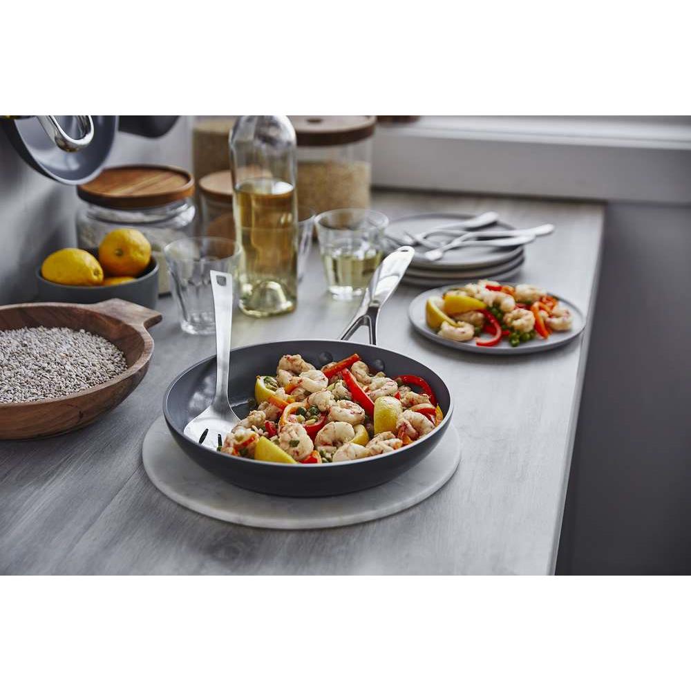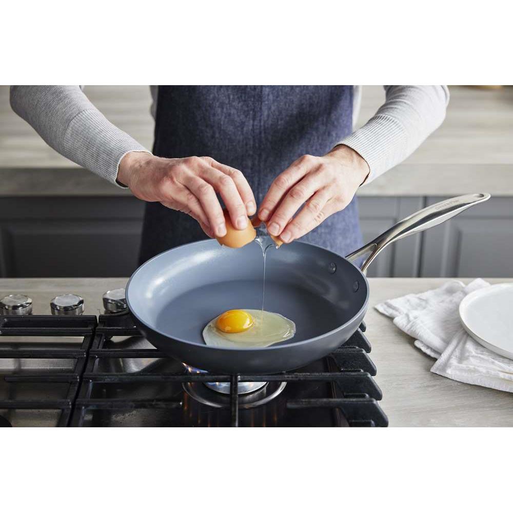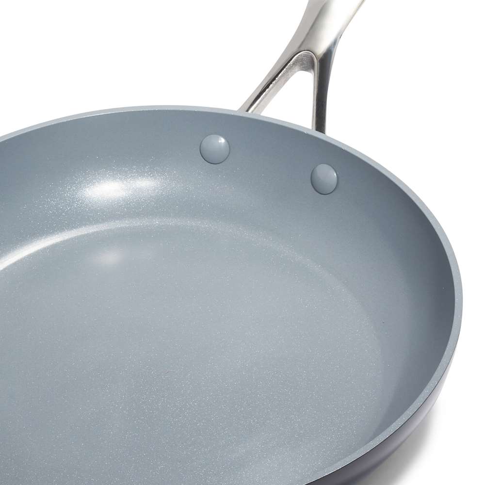 「こびりつきにくさ」と「安心安全」が共存。人にも環境にも優しいフライパン。飽きのこないシンプルで美しいデザインと優れた耐久性をもちあわせたヴェニスプロシリーズ従来の商品にも採用されていたグリーンパン独自のセラミックコーティング「サーモロン」にダイヤモンド粒子を加えた「サーモロン・インフィニティプロコーティング」を施すことで、さらに耐久性が強化し性能が飛躍的にアップしました。安全安心の剥がれにくい丈夫なコーティング加工コーティングは主に砂と同じ成分の原料から作られた、セラミック使用のノンスティック加工が施されています。焦げ付きにくく少量の油で調理できることから健康的でヘルシーなクックライフを実現できます。人体や環境に影響を及ぼす化学物質は一切使われていません。少量の油で調理しても焦げつきにくく、ヘルシーなお料理を安心してお召し上がりいただけます。さらに高まったノンスティックの耐久性。毎日のクックライフをヘルシー&省エネに摩擦にも強くお料理の際には金属製のキッチンツールも安心してご使用いただけます。IH、ガス、ハロゲンヒーターまであらゆる熱源に対応。食洗機のご使用も可能。おいしく仕上がる優れた熱伝導性IHはもちろん、様々な熱源に対応する底部には、熱変形に強く、熱伝導性に優れた独自の加工技術「マグニートIH対応加工」を施しています。素早く均一に火が通るので焦げつきにくく、お料理がよりおいしく仕上がります。また、底面がゆがむ心配もありません。内面のセラミックコーティングにはダイヤモンド粒子を配合し、セラミックとダイヤモンド粒子の相乗効果により熱伝導が良く、調理が早く仕上がります。オーブンでも使用できる耐久性の高いステンレスハンドルステンレス製のハンドルは耐久性に優れ、バランスよく握れるハンドルです。中身を移す時も負担になりにくいので、女性やご年配の方にもおすすめです。毎日使うものだから負担が少ないのは嬉しいポイントです。金属製キッチンツールの使用、お手入れの際には食洗機の使用も可能です内面のセラミックコーティングにはダイヤモンド粒子を配合し、本体のアルミ素材にはキズや衝撃に強いスクラッチガード加工が施されているので、調理回数が多い方におすすめです。外側にもセラミックコーティングが施されているので汚れが付きにくく、お手入れも簡単。毎日のお料理でタフさを実感していただけます。キッチンをより洗練された空間に演出する、シンプルで美しいデザイン。グリーンパンのフライパンは機能性だけではなく、デザイン性の高さも魅力の一つです。飽きのこないシンプルなデザインはキッチン空間を洗練された雰囲気に演出してくれます。GREEN PAN(グリーンパン)は、2007年にベルギーで誕生したクックウェアブランドです従来の加工材料であるフッ素樹脂を一切使用せず、PTFEを含まないノンスティック加工を施し、クックウェア業界に革命をもたらしました。世界100カ国以上で展開され、ヘルシーで安全、耐摩耗性に優れたクックウェアブランドとして、プロの料理人から料理愛好家まで世界中で愛されています。生産時にCO2排出量を削減するなど、人にも環境にも配慮したものづくりを実施しています。
