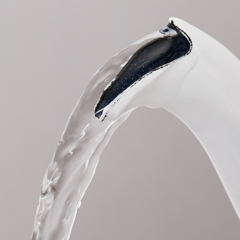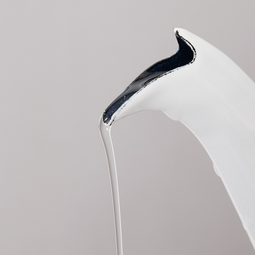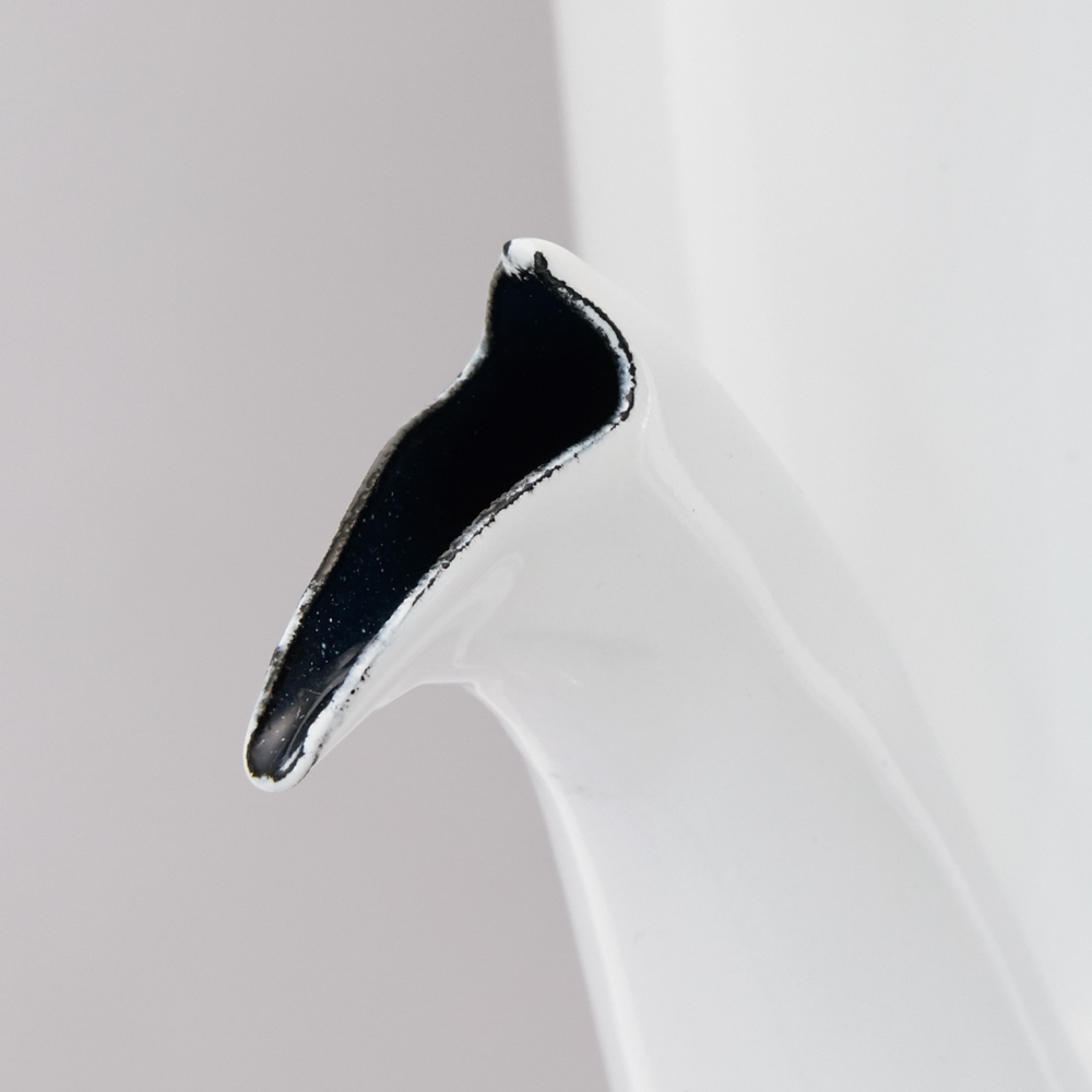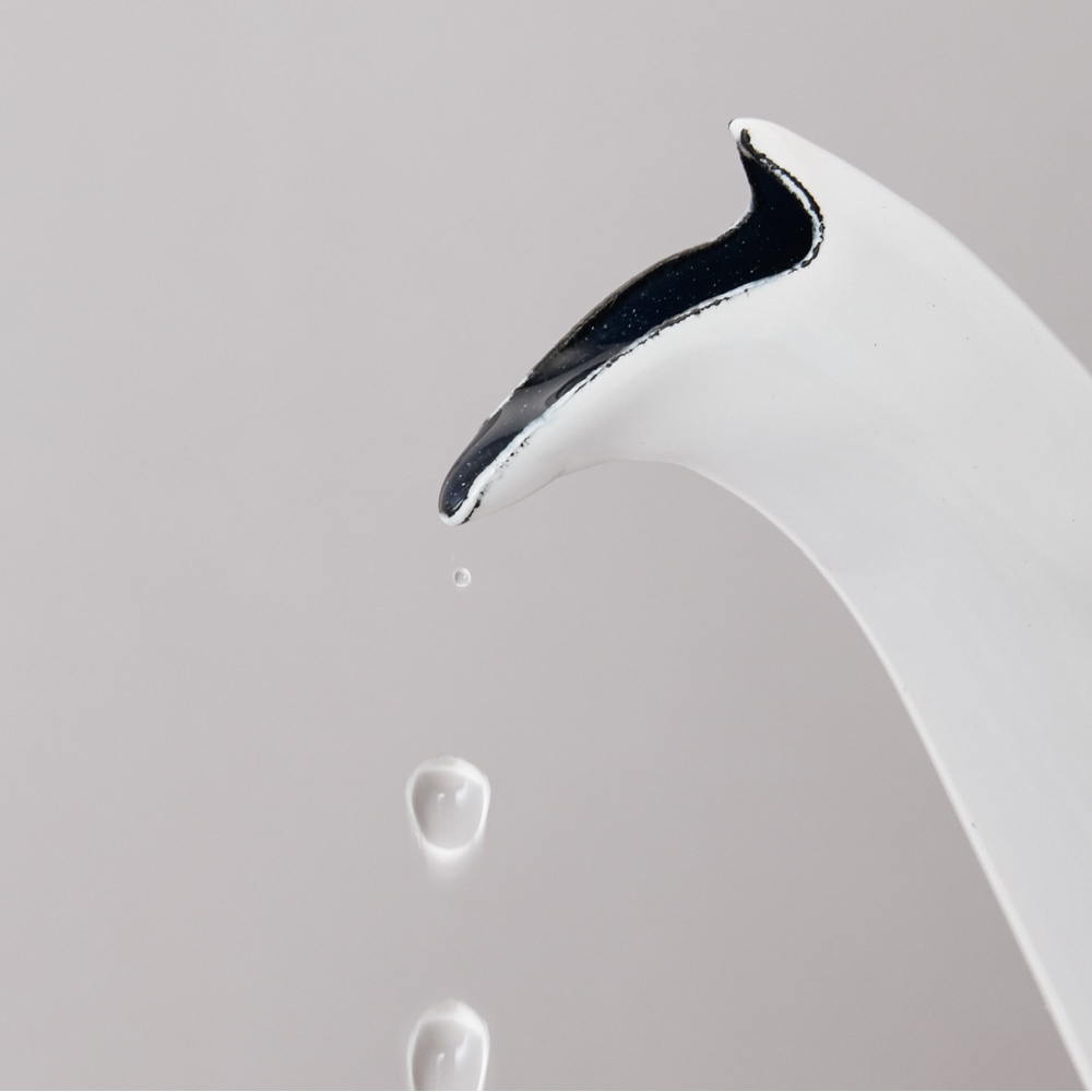 注ぎ口はきゅっと絞られ、ペリカンのくちばしのような形状。