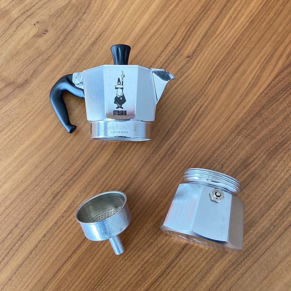カフェで飲むような本格的なエスプレッソが自宅でも簡単に楽しめる、直火式エスプレッソメーカー(マキネッタ)。ミルクと合わせてカプチーノ、アイスにかけてアフォガードも楽しめます。※こちらはビアレッティジャパンの正規輸入品です。「髭おじさん」のトレードマークで親しみのあるイタリアの老舗ビアレッティ社の定番モデルイタリア本国では一家に一台は必ずあるとまでいわれているビアレッティ社のアイコンともいえるこちらのモデル。一度使うとその簡単さ&美味しさに驚くはず!コク深いイタリアンコーヒーをご家庭で簡単に作ることができます。直火式エスプレッソメーカーとは直火にかけるだけで本格的なエスプレッソが作れるこちら。主なパーツは・水を入れるボイラー(下の部分)・コーヒー粉をセットするバスケット・抽出されたエスプレッソを受け止めるサーバー(上の部分)の3つだけ。全て分解できるので、丸洗いでき清潔&場所を取りません!使い方が簡単なので初心者にも熟練者にも下のボイラーに水を入れ、バスケットに挽いた中細挽きのコーヒー粉を擦切り一杯入れて、直火に掛けるだけ。数分後にはポコポコとエスプレッソがサーバーに上ってきて素早く完成!エスプレッソの名の通り、早く完成しますので忙しい朝にもサッと作れます。キャンプで最高の一杯を楽しめますコンパクトで頑丈なので持ち運びに最適。使用後、水ですすいで洗い流すだけでOKなのでアウトドアでも活躍します。野外で飲む濃いめの味わい深いコーヒーをお楽しみください。ミルクなどでアレンジを効かせて泡立てた牛乳を加えてカプチーノに、ミルクフォームを加えてカフェラテやマキアートに。アイスクリームにかけて、苦みと甘さを楽しむアフォガードなど、エスプレッソがあるとお店のようなアレンジを色々お楽しみいただけます!サイズ選びマキネッタは「大は小を兼ねない」と言われています。大きなサイズを買って水や粉を少なくして使用すると器具の破損の原因になります。出来上がりの目安は1カップで約50cc。サイズがUPすると50ccずつ容量がUPしていきます。ボイラーに入れる水の量の目安としては2カップは100cc、6カップは300ccです。一人で飲む場合は1カップか2カップ用、2人で飲む場合は3カップ、4カップ用くらいがちょうど良いです。※こちらはビアレッティジャパンの正規輸入品です。