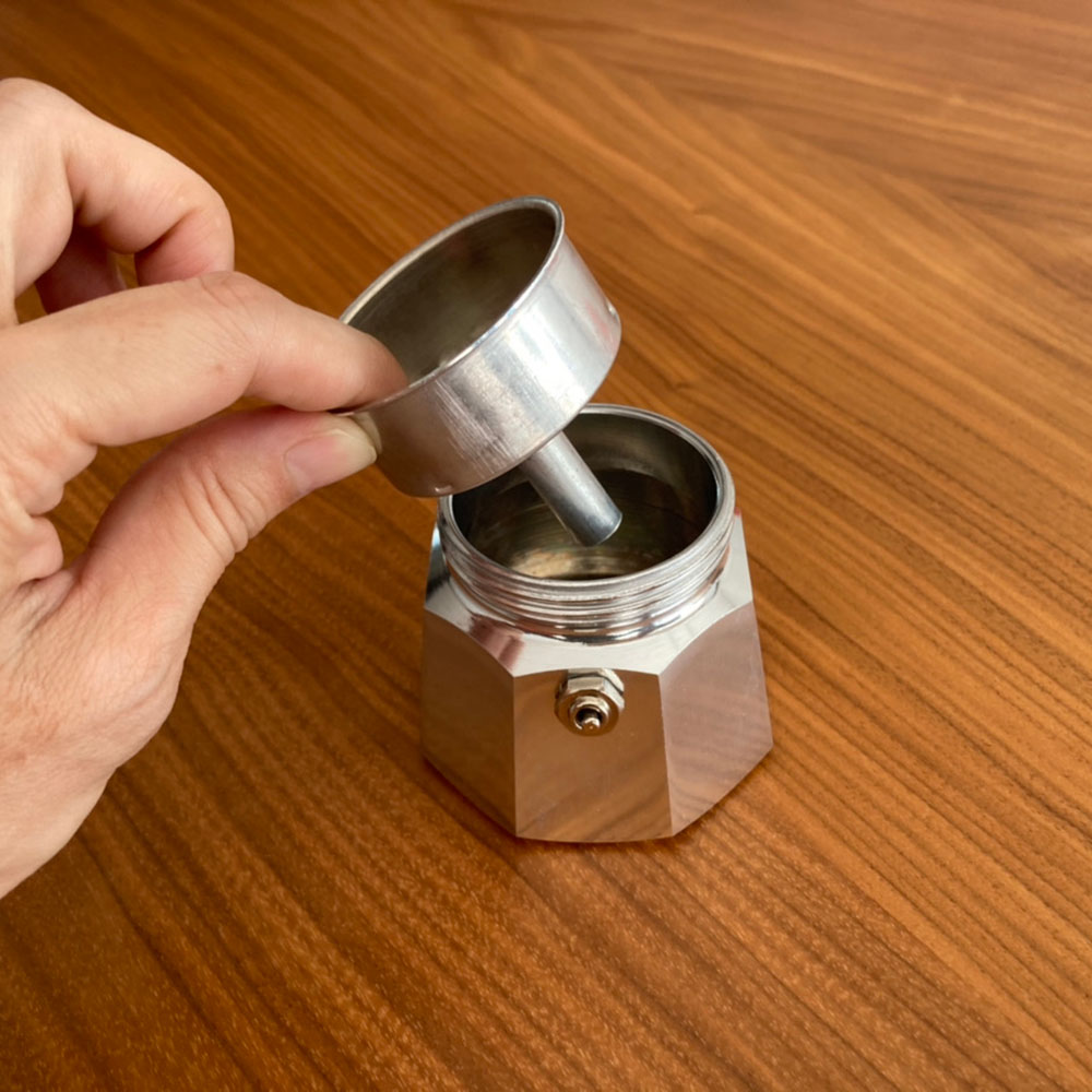 下のボイラーに水を入れて、バスケットセットします