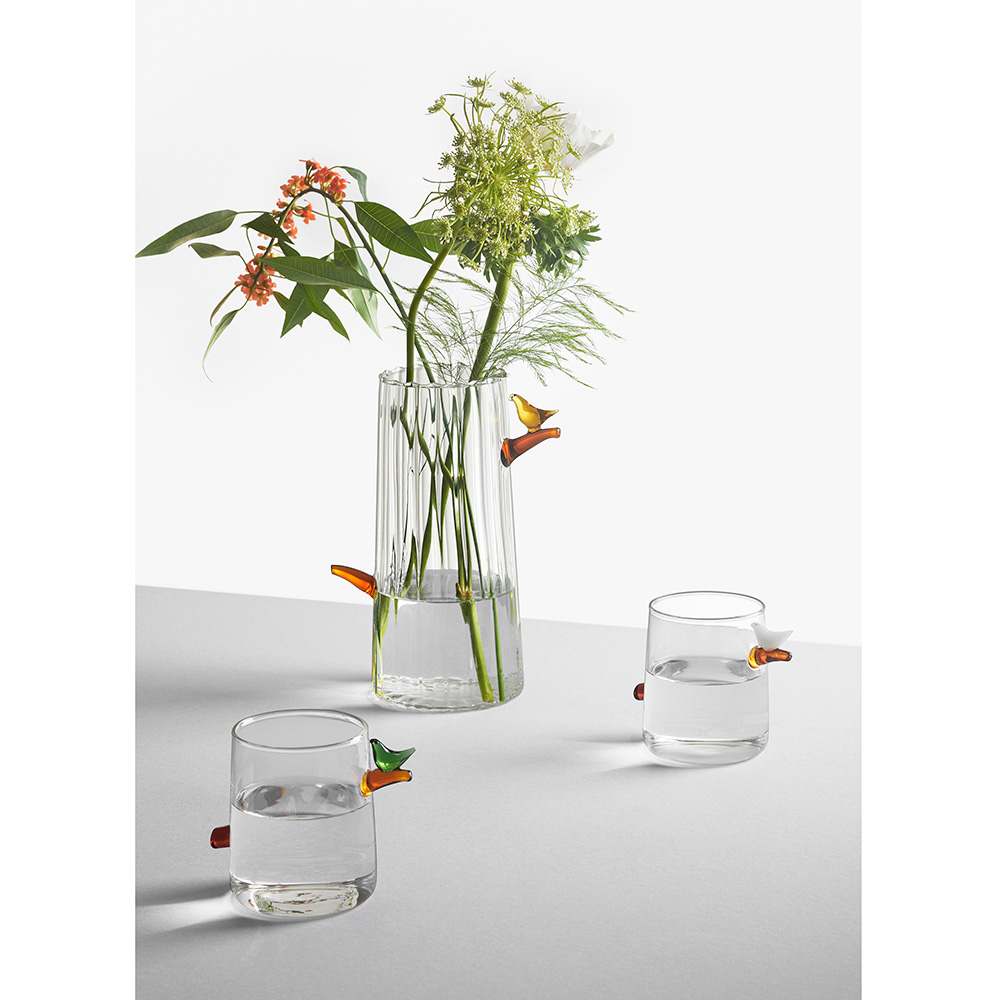 繊細で凝ったデザインのタンブラーバーズ ウォーターグラス ライトブルーバード日本人デザイナーが手掛けた、バーズシリーズ。枝の上に鳥が乗ったつい集めたくなる可愛さのドリンキングアイテムです。職人の手で作られる可愛らしい鳥が魅力的なデザインです。お好きな飲み物を入れて楽しむだけでなく、花器としてお部屋に飾るのも◎。ギフトにもおすすめです。デザイナー:Tomoko Mizu(水ともこ)イタリアに在住。日本の時計メーカーで経験を積み、ドムスアカデミーでインダストリアルデザインの修士号を取得。イタリア国内外の企業と家具、家具用アクセサリー、照明器具のプロジェクトを数多く手がける。素材や製造工程にこだわり、機能性だけでなく、一貫した詩的な視点をプロジェクトに取り入れている。ICHENDORF(イッケンドルフ)とは1900年初頭にドイツのクヴァドラート・イッヒェンドルフで創業し、職人たちが数々の作品を作り出してきた100年以上の歴史を持つガラスメーカーです。1990年に拠点をイタリアのミラノに移し、デザイナーや芸術家とコラボレーションしながら、長年の技術と現代的なデザインで「時を超えて生き続ける」商品を生み出しています。機械生産では表現するのが難しい繊細な形状とユニークなデザインが特長のブランドです。