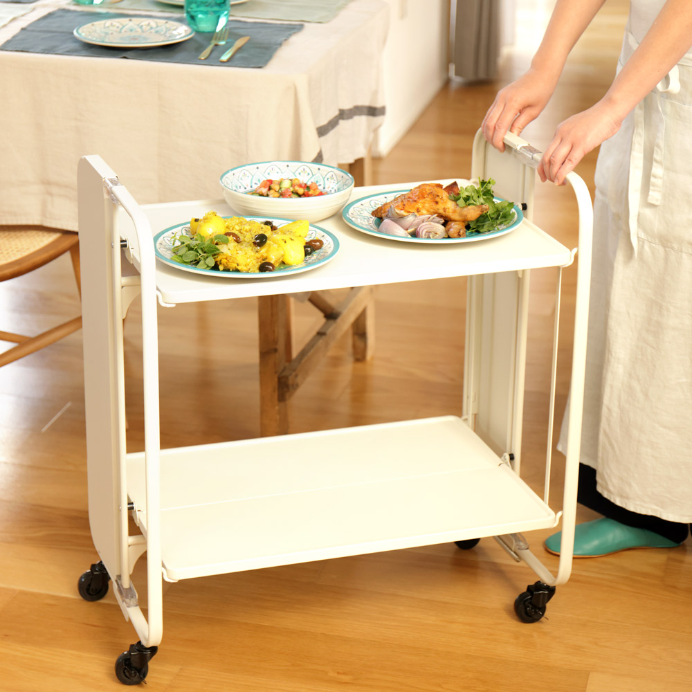 ワゴン使いならキッチンから食卓へ、キャスター付きでサーブもラクラク。