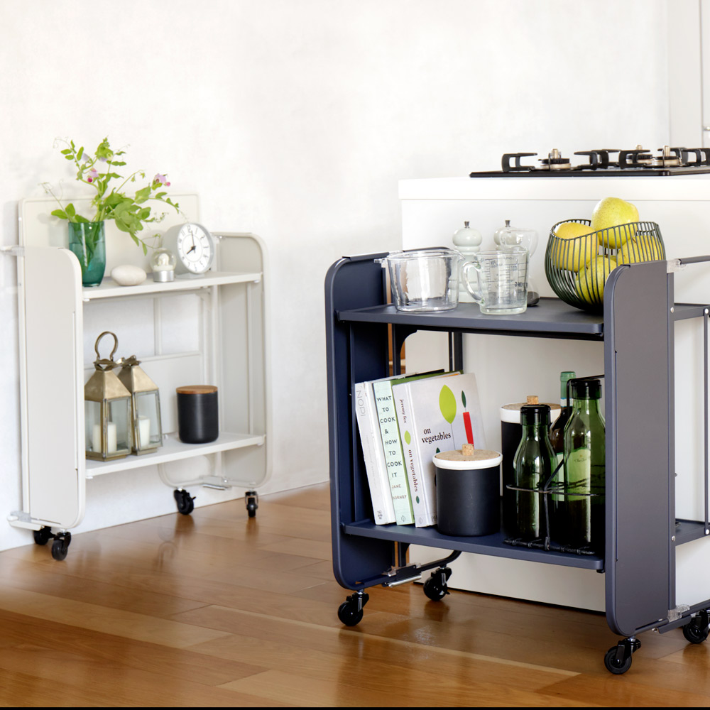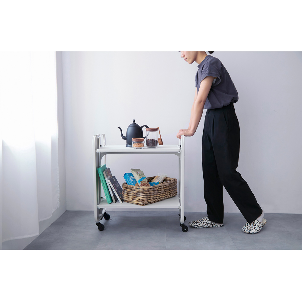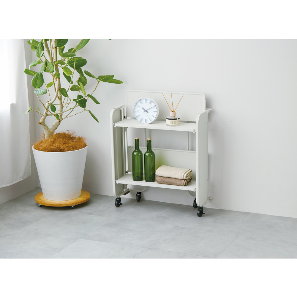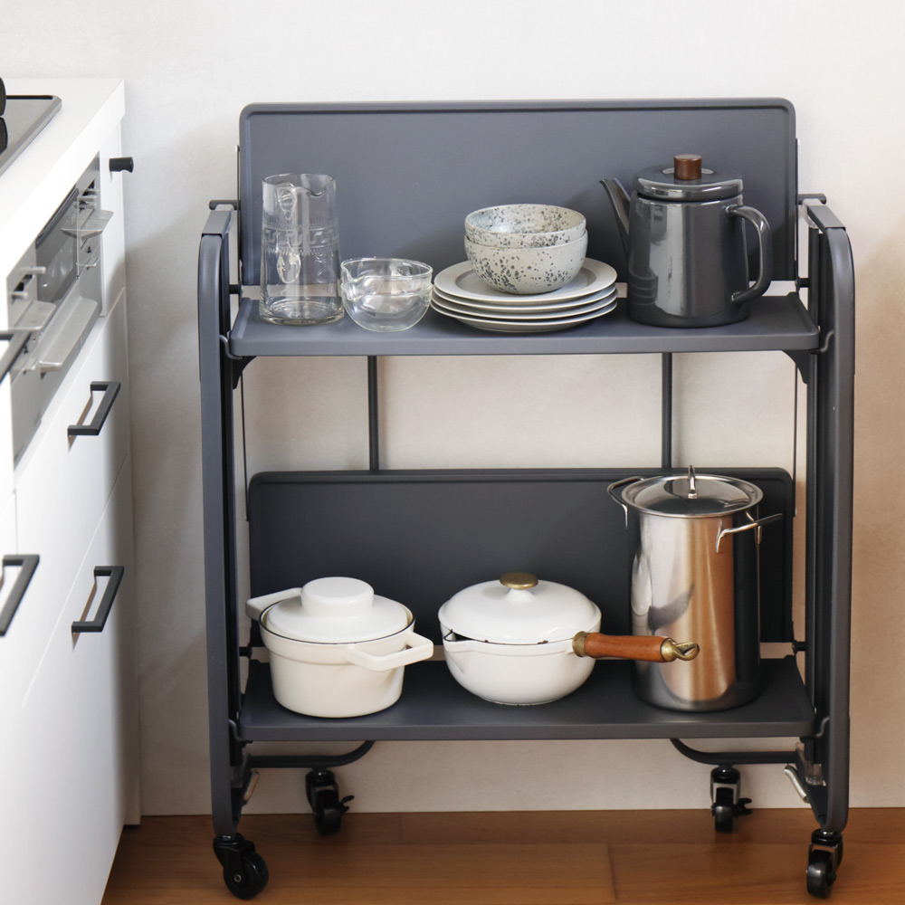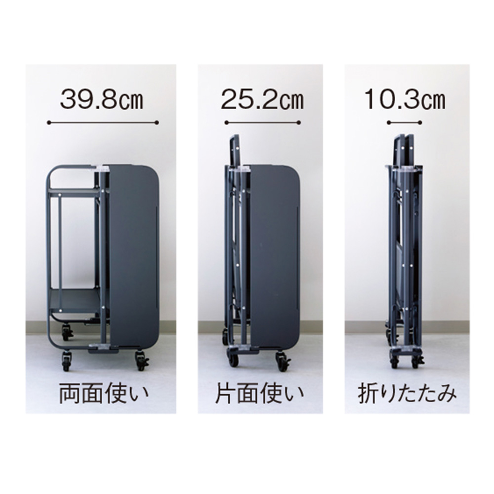 両面でワゴン、片面でラック。折りたたんで収納もできる万能トローリースペースに合わせて自在に使えるワゴンならたっぷり置けて移動もラクラク、ラックなら省スペースですっきり。キッチンに欲しい分だけ、自由に使えます。ワゴンにのせてサーブもラクラクキッチンでつくった料理を食卓へ。キャスター付きでラクにサーブできます。片面使いで収納スペースを拡大キッチンサイドに置いて鍋や食器、ストック食材などの定位置に。使いたい場所にどこでもサッと設置できます。折りたたんですき間に収納使わないときは、たためば厚み約10cmとコンパクトに。すき間に収納できて便利です。便利なマグネット対応側面のプレートにマグネットがつきます。レシピやメモ、キッチンタイマーなどをペタッ!キャスターはロック付きでピタッと固定も移動しないときはキャスターをロックすれば安心です。作業や料理のちょい置きに両面使いなら天板も広々。ちょっとした作業や料理中のちょい置きにも便利です。ス〜ッと移動できる軽量設計しっかりとしたつくりなのに軽いから、たくさん置いても部屋から部屋へラクに移動できます。インテリアスペースにも活躍どんな部屋にもなじむシンプルデザインだから、リビングや寝室でインテリアを飾っても絵になります。