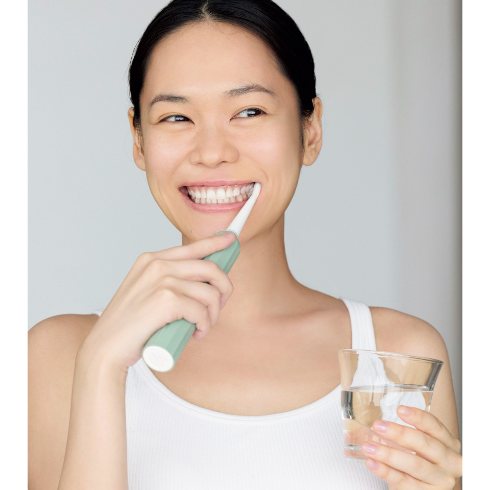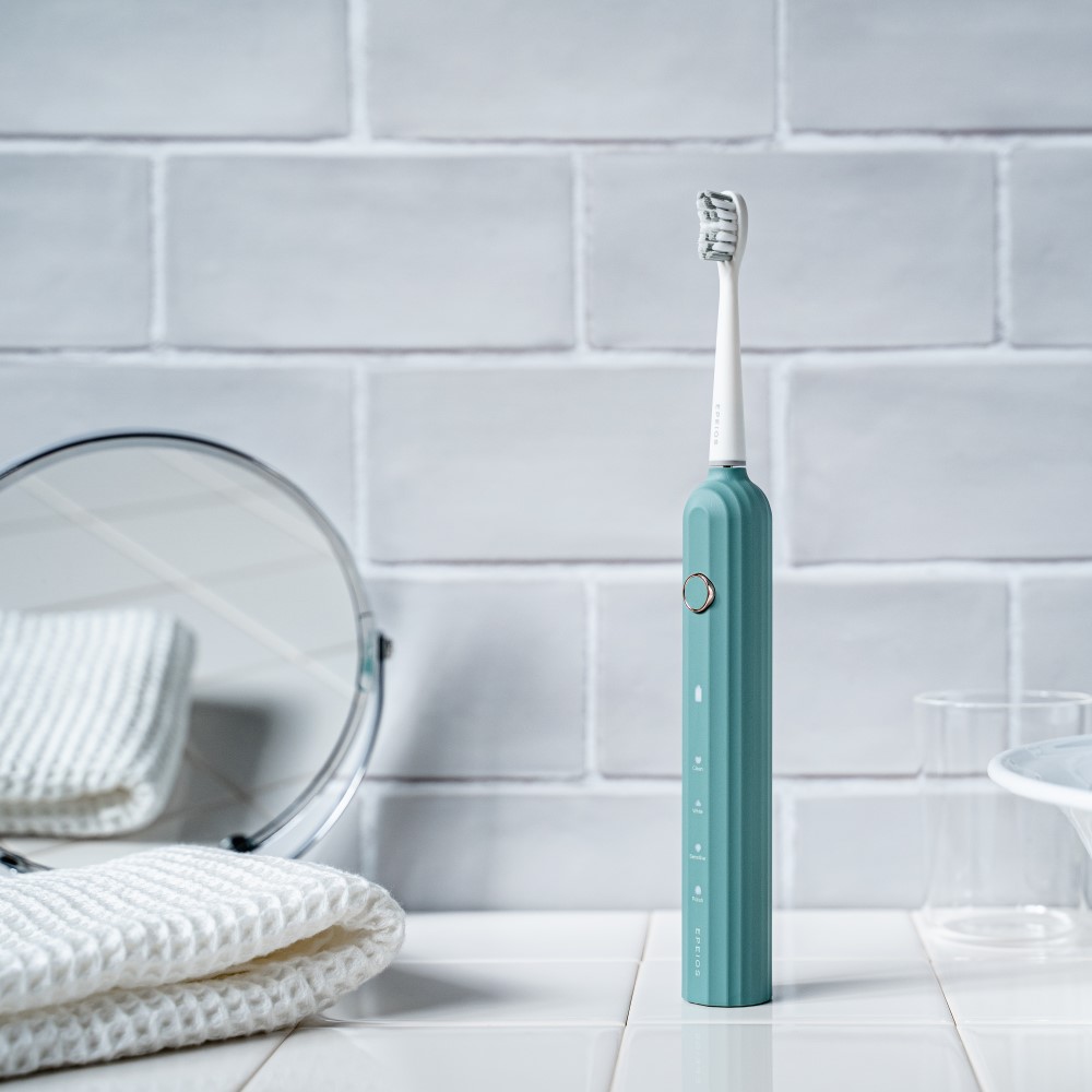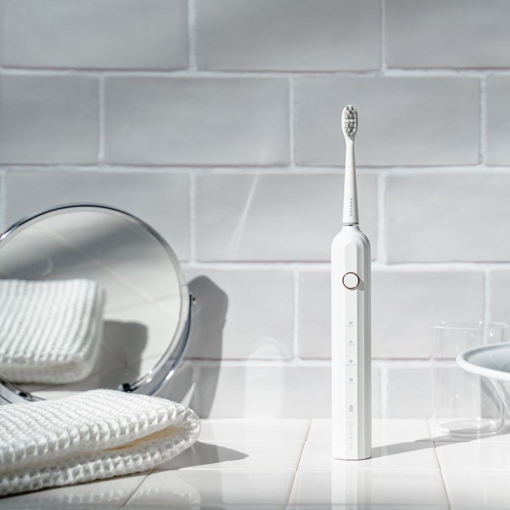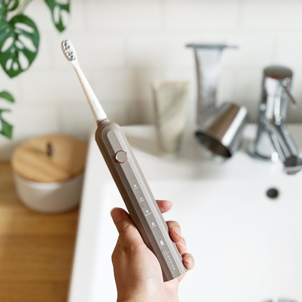 デザイン性も機能性もこだわった、今話題の電動歯ブラシデザイン性も機能性もこだわった今話題の電動歯ブラシ家電検証メディアでベストバイ殿堂入り(※1)を果たした「EPEIOS」の音波電動歯ブラシは、高いブラッシング性能とシンプルモダンなデザインが特長。毎分約32000回(※2)の音波洗浄で歯垢を浮かせ、磨き上げます。さらに、コンディションに合わせて選べる4つのモードを搭載し、効率良くツルツルな歯へ。洗面台にオシャレになじむカラーリングで、ご家族でカラーを変えるのも楽しい♪※1:『家電批評』2023年7月号で受賞※2:ホワイトモード使用時音波振動でツルツルな仕上がりへ毎分約32000回(※2)の音波洗浄で歯垢を効率的に浮かせて汚れを落とし、"ツルツル"な仕上がりに。4つのモードで歯磨きをサポートお好みやコンディションにあわせて4つのモードで歯磨きをサポート。■歯を隅々まで磨き上げる『Clean(クリーン)モード』■歯を白く磨き上げる(※3)『White(ホワイト)モード』■優しくブラッシングする『Sensitive(センシティブ)モード』■より丹念に磨き上げる『Polish(ポリッシュ)モード』※3:歯の表面の汚れを浮かせることW字型&高密度ブラシで汚れをキャッチ ブラシ部は、程よい腰のあるデュポン社製ブラシを採用。歯の形にフィットしやすいW字型の高密度ブラシで奥の汚れもキャッチ。約30秒のブラッシングリマインダータイマー機能約30秒ごとに0.5秒程度停止し、2分経つと運転終了するタイマー機能付き。口腔内の右上、左上、右下、左下を30秒ずつ、合計2分を目安にブラッシングすることで、全体の均等な歯磨きを目指せます。1回のフル充電で、最長約180日間使用可能(※4)約4時間のフル充電で、そこから最長180日間連続使用が可能。毎日使うものだから、頻繁に充電しなくて良いのは嬉しいポイント。※4:1日2回、各2分使用した場合の目安。使用環境により充電時間や使用可能時間が異なります。
