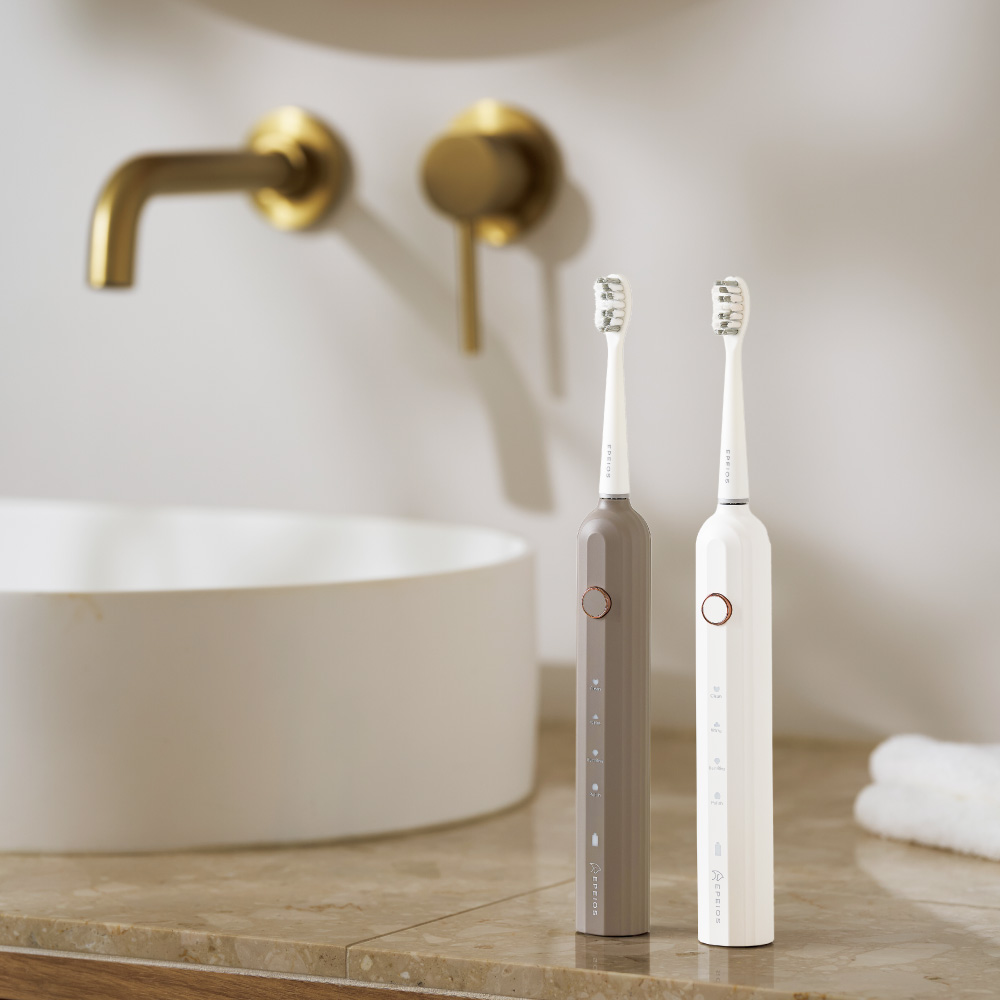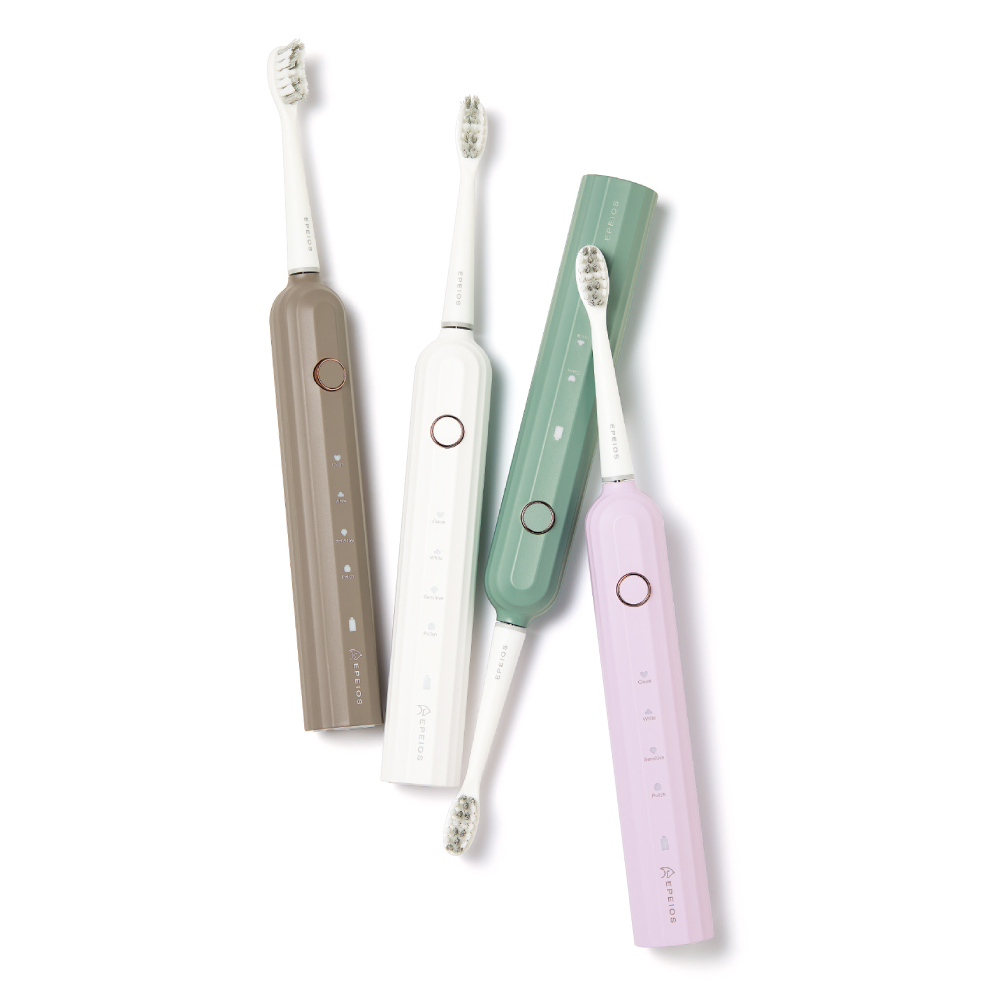 デザイン性も機能性もこだわった、今話題の電動歯ブラシ音波電動歯ブラシ+替えブラシ4本のお得なセット組。専用替えブラシ(レギュラーサイズ)2本×2箱が付いたお得なセット。本体付属のブラシヘッド2本と合わせると、合計6本のブラシヘッドが付いています。本体と、替えブラシをそれぞれ単品でご購入いただくよりお得!デザイン性も機能性もこだわった今話題の電動歯ブラシ家電検証メディアでベストバイ殿堂入り(※1)を果たした「EPEIOS」の音波電動歯ブラシは、高いブラッシング性能とシンプルモダンなデザインが特長。毎分約32000回(※2)の音波洗浄で歯垢を浮かせ、磨き上げます。さらに、コンディションに合わせて選べる4つのモードを搭載し、効率良くツルツルな歯へ。洗面台にオシャレになじむカラーリングで、ご家族でカラーを変えるのも楽しい♪※1:『家電批評』2023年7月号で受賞※2:ホワイトモード使用時音波振動でツルツルな仕上がりへ毎分約32000回(※2)の音波洗浄で歯垢を効率的に浮かせて汚れを落とし、"ツルツル"な仕上がりに。4つのモードで歯磨きをサポートお好みやコンディションにあわせて4つのモードで歯磨きをサポート。■歯を隅々まで磨き上げる『Clean(クリーン)モード』■歯を白く磨き上げる(※3)『White(ホワイト)モード』■優しくブラッシングする『Sensitive(センシティブ)モード』■より丹念に磨き上げる『Polish(ポリッシュ)モード』※3:歯の表面の汚れを浮かせることW字型&高密度ブラシで汚れをキャッチ ブラシ部は、程よい腰のあるデュポン社製ブラシを採用。歯の形にフィットしやすいW字型の高密度ブラシで奥の汚れもキャッチ。約30秒のブラッシングリマインダータイマー機能約30秒ごとに0.5秒程度停止し、2分経つと運転終了するタイマー機能付き。口腔内の右上、左上、右下、左下を30秒ずつ、合計2分を目安にブラッシングすることで、全体の均等な歯磨きを目指せます。1回のフル充電で、最長約180日間使用可能(※4)約4時間のフル充電で、そこから最長180日間連続使用が可能。毎日使うものだから、頻繁に充電しなくて良いのは嬉しいポイント。※4:1日2回、各2分使用した場合の目安。使用環境により充電時間や使用可能時間が異なります。