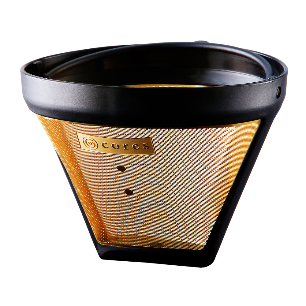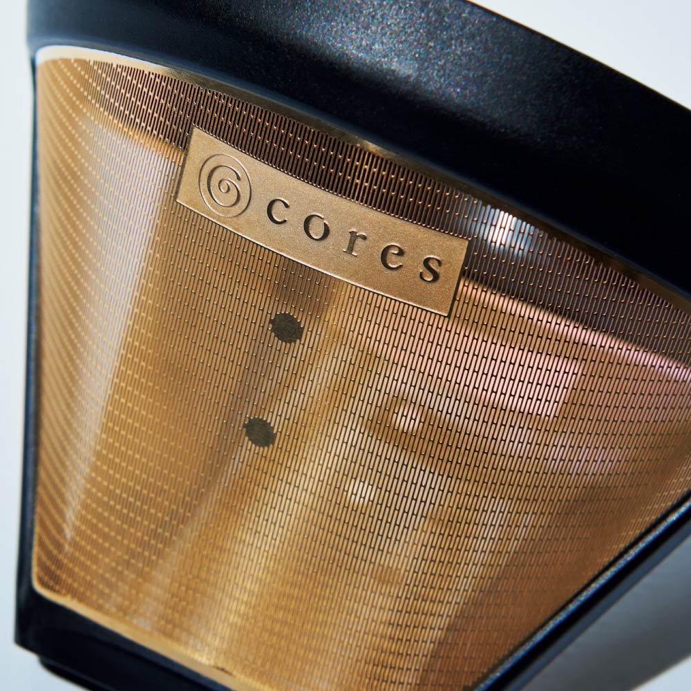 純金コーティングされた特別なフィルターです。ペーパーレスで環境に優しく、豆本来の香り高い風味をクリアに抽出。雑味のない、上質な一杯が、いつものコーヒータイムを豊かなひとときへと誘います。香りが高く、柔らかくまろやかな味わい!…初めてこのゴールドフィルターで淹れた時にちょっと驚きました。ペーパーフィルターでは吸い取られてしまうコーヒーオイルが抽出されるので、香りがふくらみ、コクがでるのです。毎日のコーヒータイムを格上げしたい方に、手軽で長く使える選択としてお勧めします。純金コーティングで化学変化を防ぎ、豆本来の香りをそのまま抽出純金は酸化や化学変化に強く、コーヒーの繊細な風味や香りに影響を与えません。これにより、淹れたてのコーヒーが持つ豊かなアロマとクリアな味わいをダイレクトに楽しめます。さらにカビや臭いも付きにくく、衛生的に長く使えるのも魅力です。独自の縦長メッシュ構造で目詰まりしにくく、スムーズな高温短時間抽出を実現メッシュ穴は肉眼でもわかるほど粗く、縦長の形状に設計されています。これにより目詰まりが起こりにくく、お湯の抜けが速いので、雑味を抑えつつコーヒーオイルや風味を余すことなく抽出。スペシャルティコーヒーのフルーティーな個性や深いコクをクリアに感じられます。ペーパーレスで環境に優しく、経済的にもお得使い捨てのペーパーフィルターが不要なので、ゴミの削減に貢献し、フィルターの買い置きの手間もありません。繰り返し使えるため、長く愛用するほど経済的です。付属のフィルターホルダーは抽出を妨げない理想的な設計フィルターとの接触点を最小限に抑えたホルダーは、スピーディーな抽出を妨げず、コーヒーの味わいを最大限に引き出します。ホルダーは取り外して洗いやすく、清潔に保てるのも嬉しいポイントです。お手入れ簡単、毎日気軽に本格的なコーヒーを楽しめる使用後はサッと水で洗い流すだけで清潔に保てます。忙しい日々でも手間なく使えて、毎日上質なコーヒータイムを実現します。CORESゴールドフィルターがあれば、ペーパーフィルターのストックやゴミの心配なく、いつでも気軽に本格的な味わいのコーヒーを楽しめます。環境にも配慮しながら、豆本来の香りとコクを存分に味わう時間は、日常の小さな贅沢。忙しい毎日に寄り添い、心豊かなコーヒータイムをお届けします。ぜひ、あなたの暮らしに取り入れてみてはいかがでしょうか。