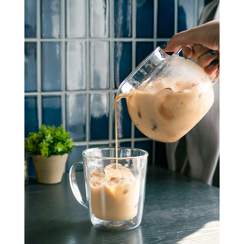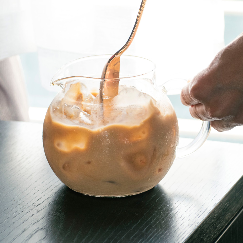 氷を入れておいて、濃いめに珈琲を抽出しミルクを入れれば美味しいカフェオレの完成。