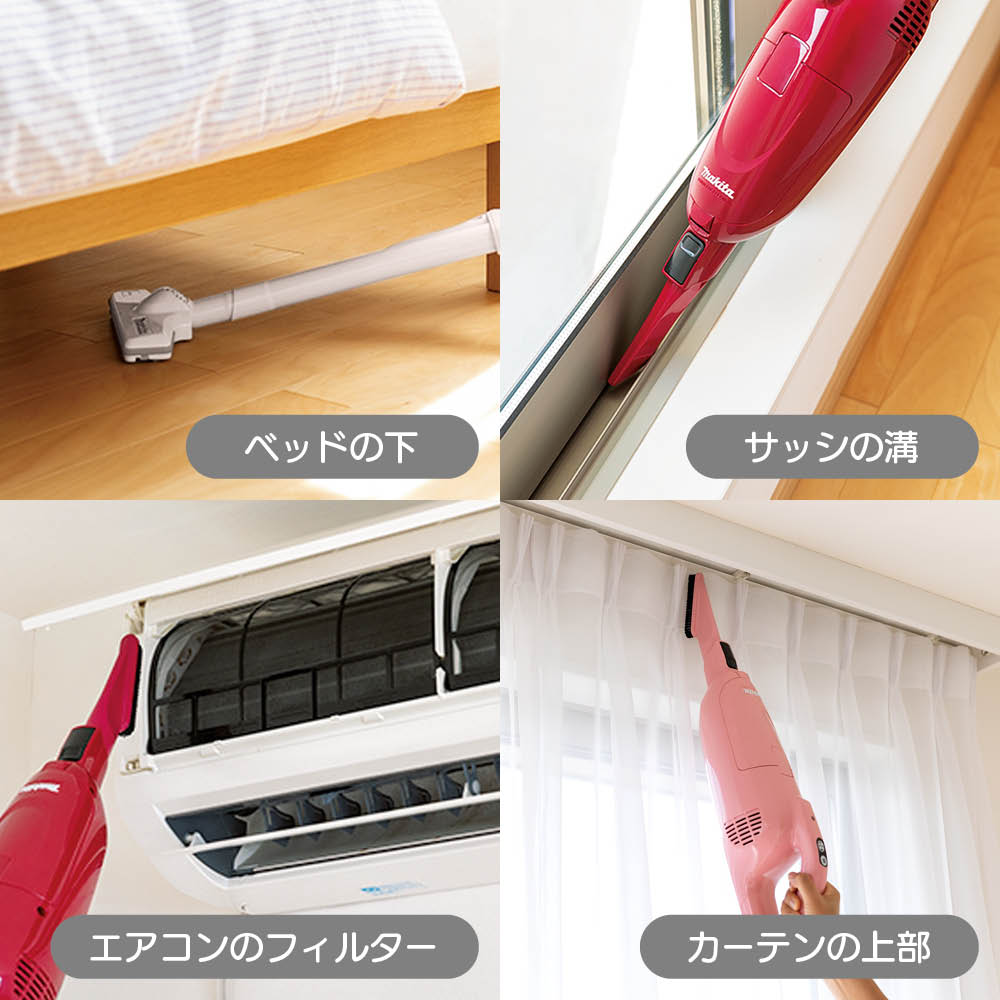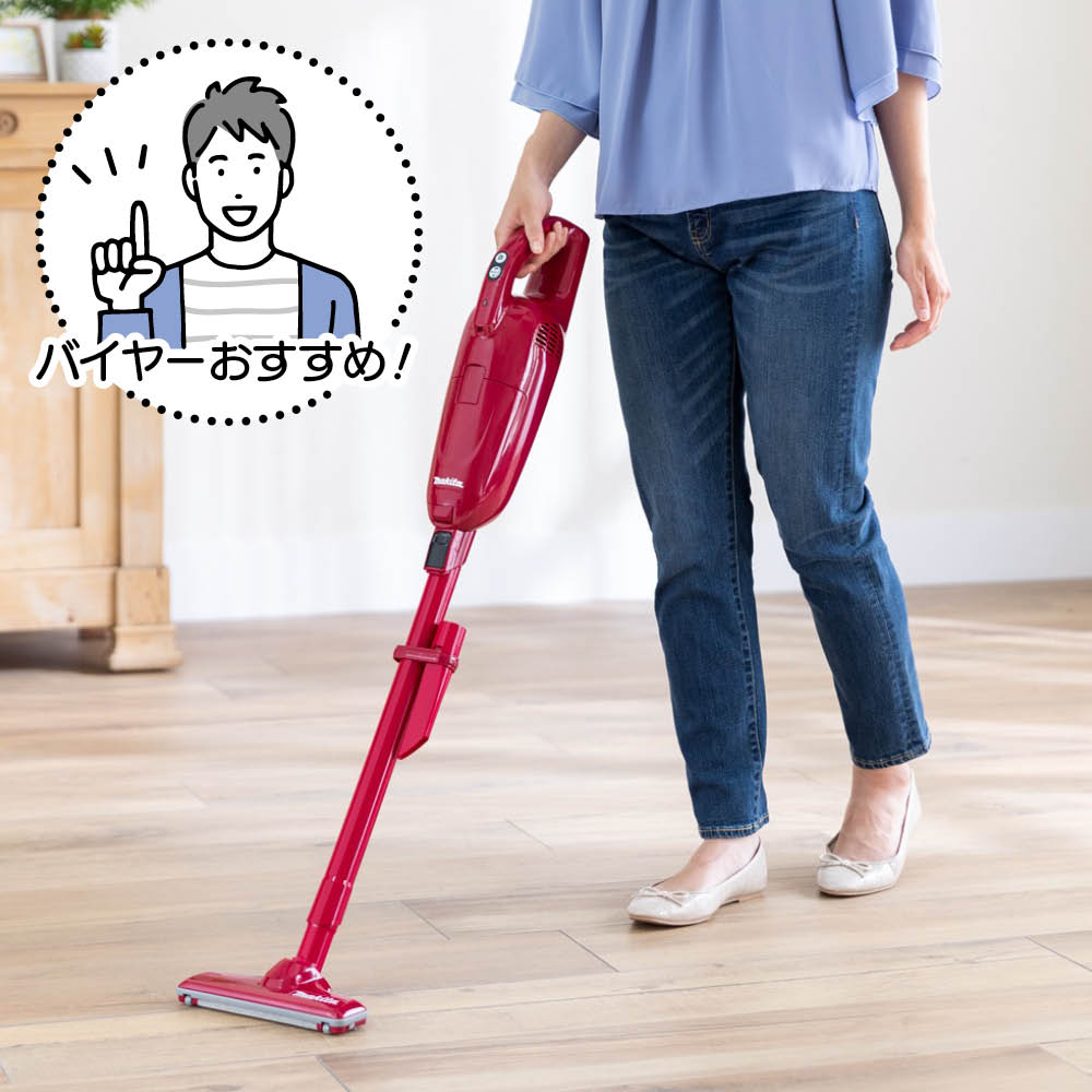 シリーズ累計12万5000台突破!世界のマキタの2WAYコードレスクリーナーです。約1.3kgの軽量ボディにパワフルモードを搭載。さらにハンディで使う時に便利な「蛇腹ホース」とテレビ台や棚などの掃除に役立つ「棚ブラシ」が付いた、ディノス限定セットでお届けします。※2011年1月〜2025年9月末までのディノスシリーズ累計出荷数。片手でラクラク、軽さと吸引力を両立した実力派わずか約1.3kgとホウキのような軽さと、パワフルな吸引力を両立。腰を曲げずにかけられるので身体への負担が少なく、思い立った時にスイスイお掃除できるのも人気の理由です。コンパクトながら頼れる一台で、毎日の掃除がぐっとラクになります。スティック&ハンディの2WAY仕様だから、家中まるごときれいに付属のノズルを付け替えてハンディで使えば、高所から細部、ソファや階段まで幅広くお掃除。1台あれば家中のあらゆる場所をすみずみまできれいにできます。コードレスでも驚く吸引力。その秘密は強力モーターにありマキタの掃除機がパワフルなのは、電動工具と同じ強力モーターを搭載しているから。コンパクトでも安定した吸引力を発揮し、フローリングのすき間などに入り込んだ砂粒やホコリまでグングン吸い取ります。充実の付属ノズル。ディノスだけの豪華特別セットでお届け!お得なセットはディノスだけ!標準付属品にハンディ時に便利な「蛇腹ホース」と棚の上の掃除が手軽にできる「棚ブラシ」が付いた豪華特別セットでお届けします。※付属品をまとめてしまえる収納ケース(別売)もご用意しています。普段届きにくい場所も「蛇腹ホース」と「棚ブラシ」ですっきり吸引「蛇腹ホース」は、ハンディにつけて照明や棚の上などの掃除に。さらに「棚ブラシ」と組み合わせれば、棚の奥やテレビ台の隙間などのホコリ取りにも活躍します。パワフルモードの吸引力は「強」の約1.4倍!小回りヘッドで狭い所もラクラク運転は、ボタンひとつで「標準・強・パワフル」の3段階の切り替えが可能。パワフルモードなら、重たいゴミからフローリングの隙間の砂粒や毛髪までグングン吸い込みます。また、左右前後に自在に動き、ソファ下など狭いすき間にもスッと差し込める小回りの良いヘッドも特徴です。プロも認める実力!マキタならではの信頼の品質業務用の掃除機としても圧倒的なシェアを誇るマキタの掃除機。電動工具メーカーとして培った技術と確かな性能・耐久性で、日常のお掃除を快適にする信頼のブランドです。思わず「えっ!」と声が出るほどの軽さと吸引力を実感してください「想像以上に軽く、操作がしやすい。この軽さは実際に持って実感してみないとわかりません。また、小回りが効くので、子どもの食べこぼしや食べかす、ペットの毛、階段のホコリなど、日常の汚れをサッと掃除をするのに本当に便利です」