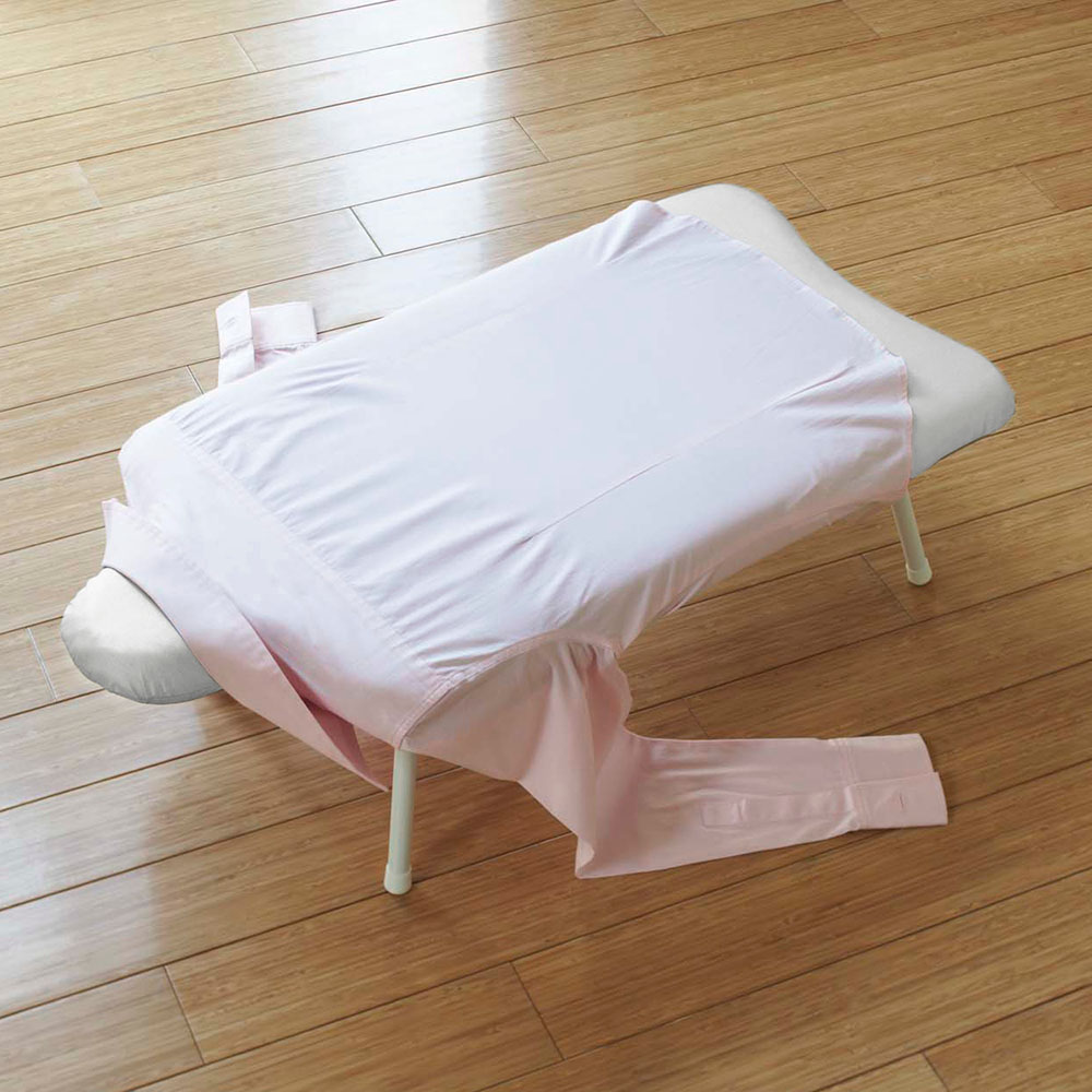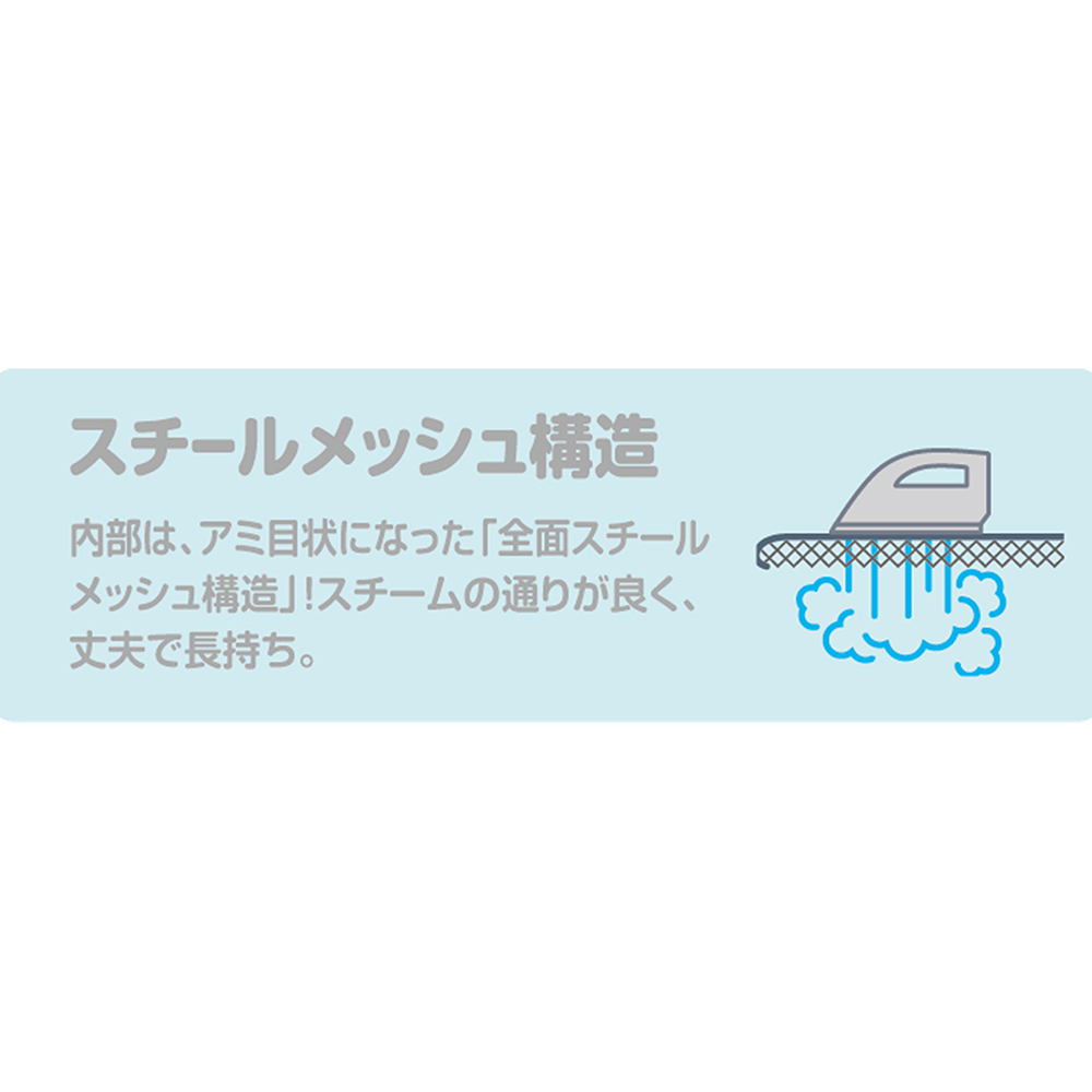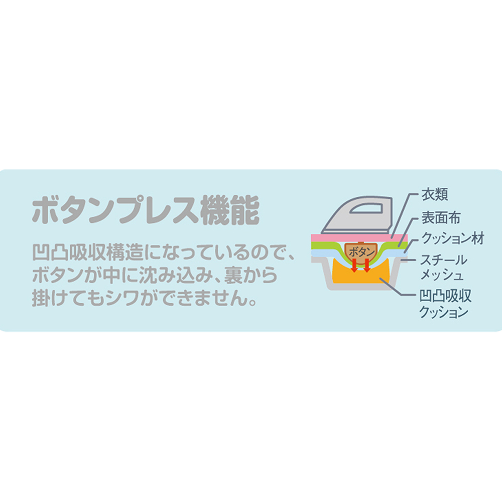 人体構造を考え、機能・掛け心地を追求した構造で服にぴったりフィットするのでちょっとした作業が楽に、仕上がりもキレイ。忙しい毎日のアイロン掛けに活躍してくれます。アイロン台の老舗「山崎実業」の商品です。とても使いやすい人体型スチールメッシュアイロン台毎日の家事を快適にする工夫が光る人体型スチールメッシュアイロン台です。洋服がアイロン台にぴったりフィットし、シャツやブラウスなどのアイロン掛けが簡単に美しく仕上がります。人体構造に沿った舟形フォルム|アイロンがけが格段にラクになる人体型フォルムを採用することで、シャツや襟・カフス、袖といった細かい部分まで隅々までしっかりアイロンがけが可能。台の凸部分を活用することで生地がズレにくく、不自然なシワになりにくい設計です。大人サイズの衣類もストレスなく一気に仕上げられます。丈夫なスチール製&メッシュ構造|安定感と通気性を両立天板・脚部は粉体塗装のスチール製。しっかりとした作りで作業中も安定感も◎。内部はアミ目状になったスチールメッシュ構造です。メッシュ構造は、スチームの通りがよく、パリッと美しい仕上がりを実現します。熱による歪みなどが生じにくく、長く使用できます。クッション材にはポリエステル、表面生地には麻混素材のカバーを使用したこだわりの仕上がり。麻混カバーのメリット綿100%の生地よりも摩擦に強くまた熱にも強い耐久性がポイントです!ボタンプレス機能付き凹凸吸収構造になっているので、ボタンが沈み込み、裏から掛けてもシワができず、キレイに仕上がります。収納しやすいコンパクト設計&フック付きご使用後は脚をパタンと折りたためることが可能です。クローゼットやすき間に省スペースで収納できるのはもちろん、付属のフックでハンガーのように掛けてスッキリ収納もOK。忙しい毎日でもサッと出して、サッと片付けられる快適さです。