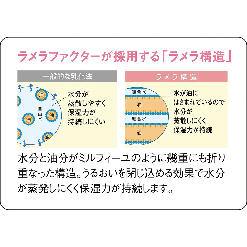 五感を刺激し肌エナジーを目覚めさせる人気の高いラメラ構造100%のバームは、ロングセラー13年目。乾燥によるエイジングサインに対応すべく、24時間乾かない「潤環美肌」を目指し心地良い感触・香りと、肌の上にもう1枚皮膚をのせる発想で潤いを守ります。パラベンフリーで、やさしい使いごごち。【ラメラとは?】油と水の層を、まるでミルフィーユのように何層にも重ねた強固な構造。構造が壊れにくく、ハリ成分や潤い成分をしっかりためておけるナノテクノロジー技術。また、肌の潤い構成成分とよく似た構造なので、美肌成分が肌になじみやすいことが特徴です。