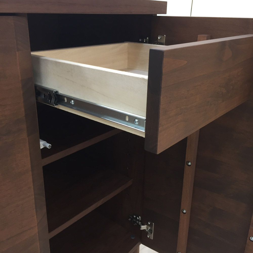 前面のアルダー天然木にはウレタン塗装を施し、水や汚れに配慮。お手入れ簡単です。