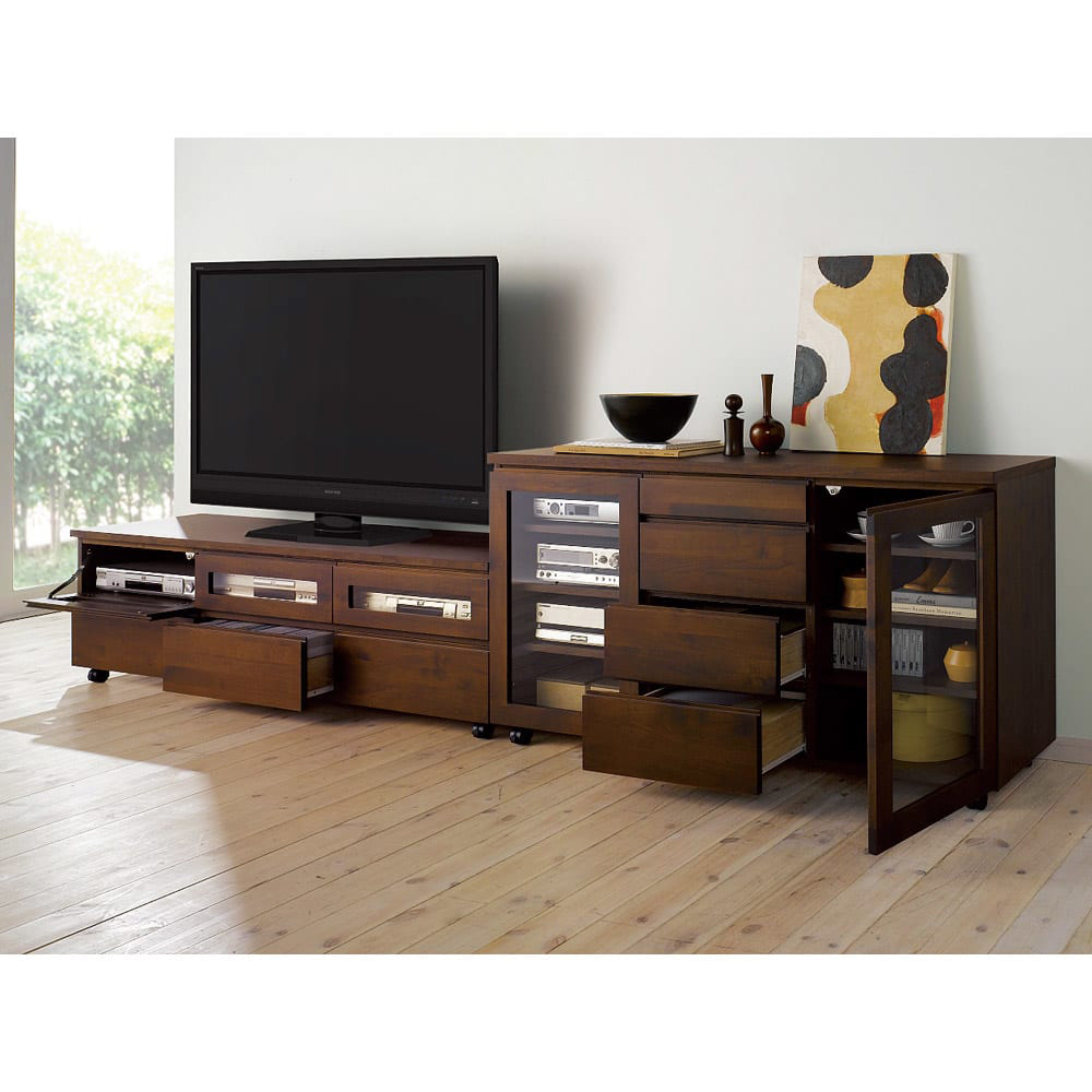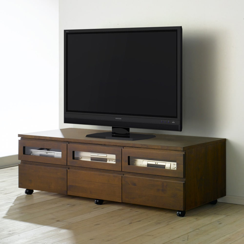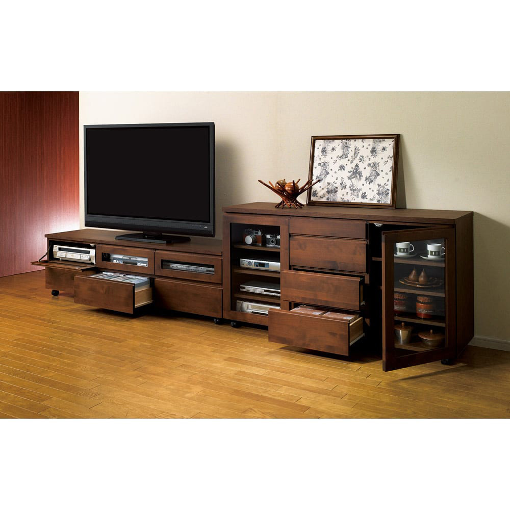 テレビを載せたまま、見やすい場所に移動できるキャスター付きのテレビ台。65Vまでの大型テレビにも対応するサイズで、北欧風のアルダー天然木の温かみが寛ぎの空間を演出します。上質なクラシックが似合う天然木の実力。●アルダー天然木の温もりが身も心もワンランク上の生活へと誘います。●テレビボードを中心に、キャビネットやデスクなどもシリーズで揃えられ、安らぎと寛ぎあふれるリビング収納空間を作り出します。●2005年7月発売開始以降、その格調高い風格と暮らしに快適な機能がロングセラーの秘密です。お客様満足度91%の高評価を頂戴しています。【家具職人の想い】●家族とともに成長できるよう細部までこだわり心を込めて作り上げています。【製品情報】[色の種類]●高級感のある落ち着いた印象のダークブラウン。●柔らかさと癒しの眼差しライトブラウン。[サイズ・バリエーション]●大画面薄型液晶テレビにも対応できるテレビ台の幅は、106cm、159cm。●DVDレコーダーやデッキ収納に適したキャビネットの幅は90.5cm、135.5cm。●パソコン作業や趣味に没頭できるデスクは、幅100cm。●薄型デスクに合わせて機動力のあるデスクサイドチェストワゴン。●テレビ台に組み合わせて、伸縮、角度調節可能なコーナーテレビ台使用が実現するスイング天板ネストボード。[仕様]●キャスター付きで、テレビとゲーム機との配線やお掃除や模様替え、リフォーム、新生活をお手軽にリフレッシュ(デスク除く)。●引き出しは、スライドレール付きで開閉楽々。DVDやゲームの収納が快適です。●32〜65Vの大型テレビに適しています。●デッキ収納部は、フラップ扉仕様でリモコン透過性の良いガラスを採用、閉じたまま操作可能です。●デッキ収納部には2口コンセント付き。のスペース有効活用に快適な力を発揮します。●引き出しも安心で快適なスライドレール付き。●別売りの「ネストボード」と組み合わせてお部屋のコーナーで使用することができます。【活躍空間】●リビングルームの主役を支えるTVボードユニットとして。●寝室のおしゃれで格調高いテレビコーナーとして。【担当者からのメッセージ】●高級楽器などにも使われるアルダー材の手触りとその表情が暮らしを底上げする力を宿しています。●安心の国産、日本製。完成商品ですので、届いたら直ぐ設置いただけるのもお勧めポイントです。●新生活にもおすすめのテレビ台です。