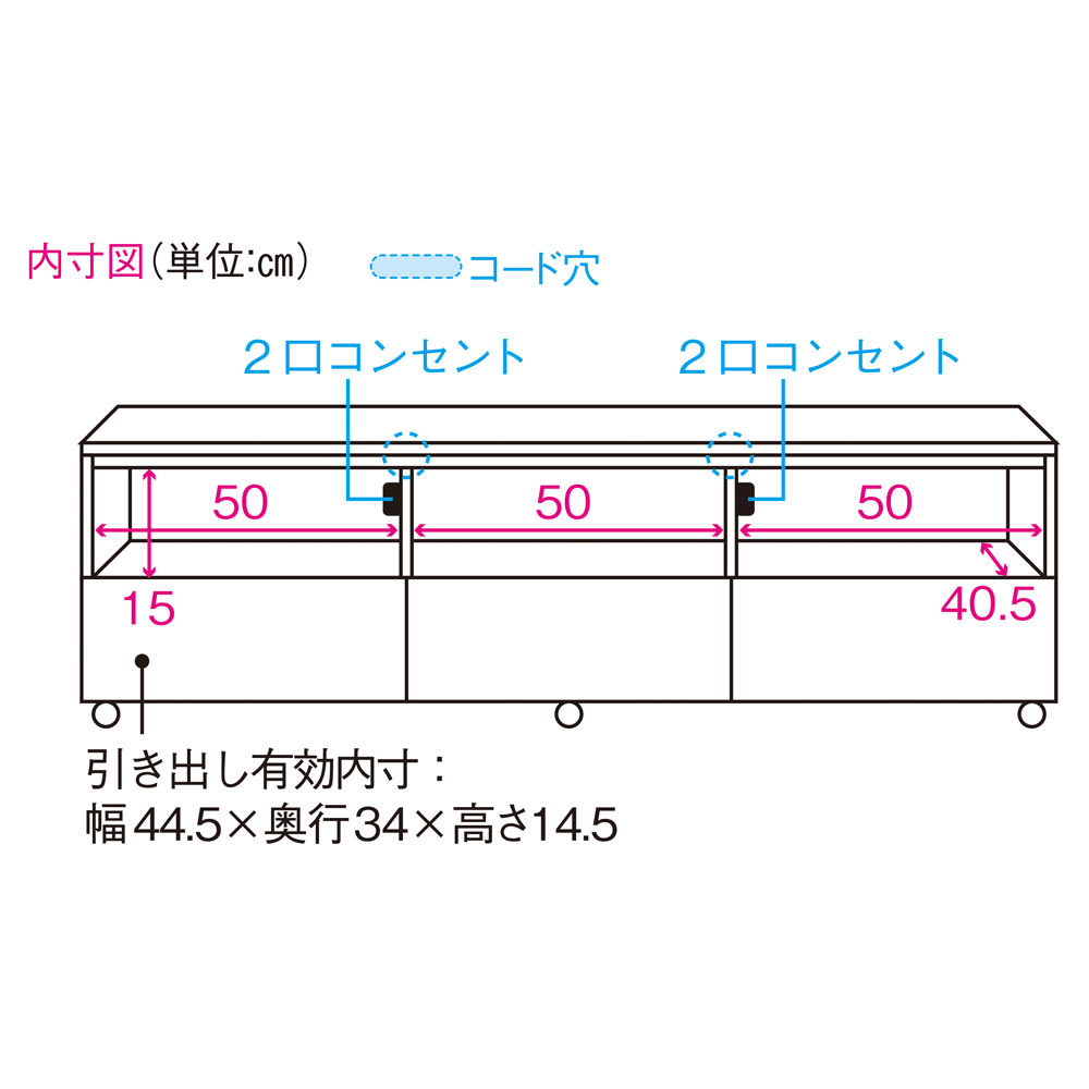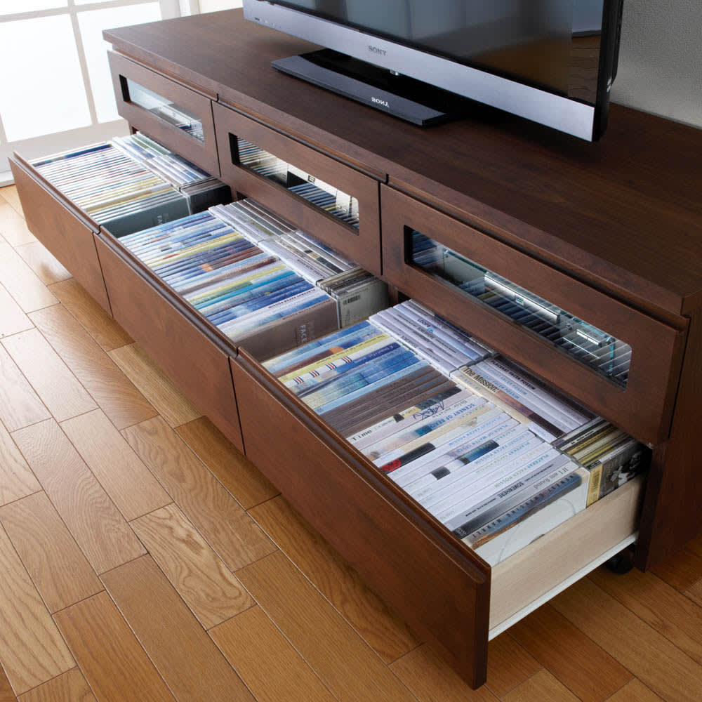 引き出しはコロレール付きで開閉がスムーズ。DVDやゲーム類も収納できる内寸サイズになっています。