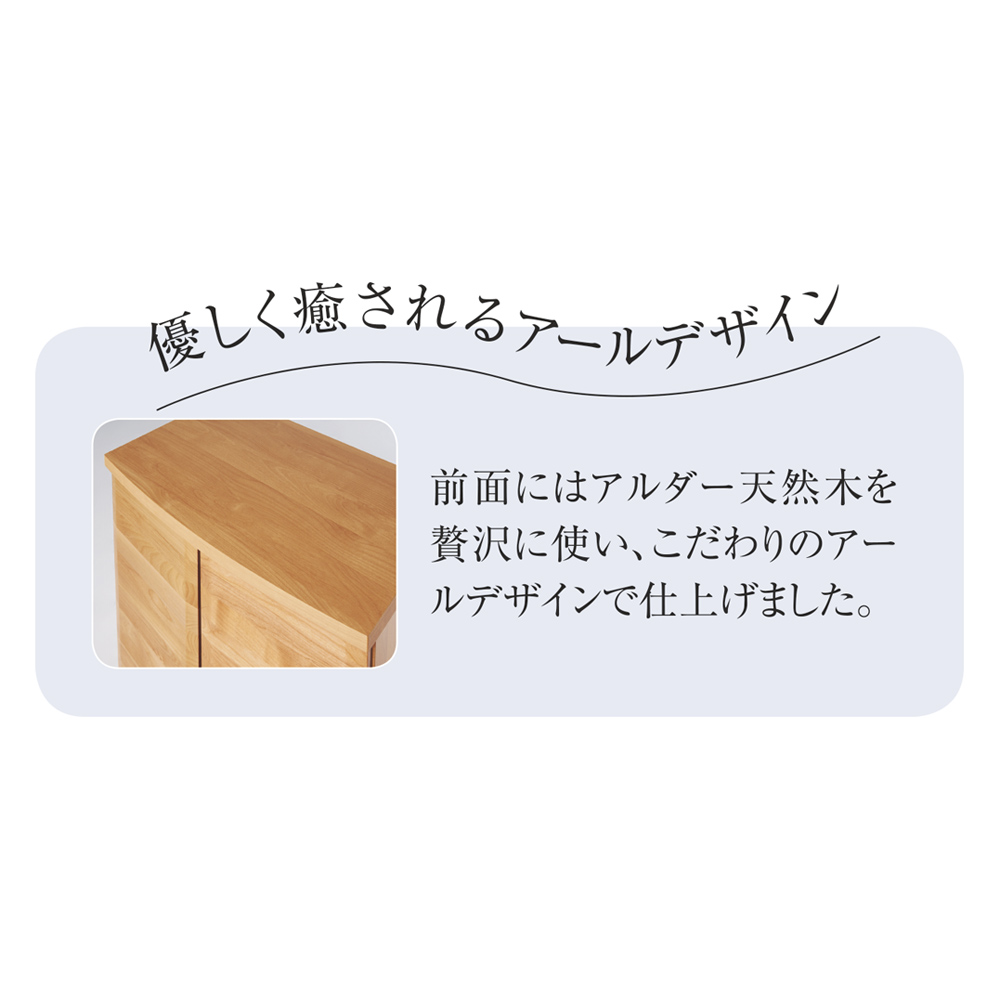 なめらかな曲線を描くアールデザインが魅力。アルダー天然木のナチュラルな風合いも、より際立って感じられます。