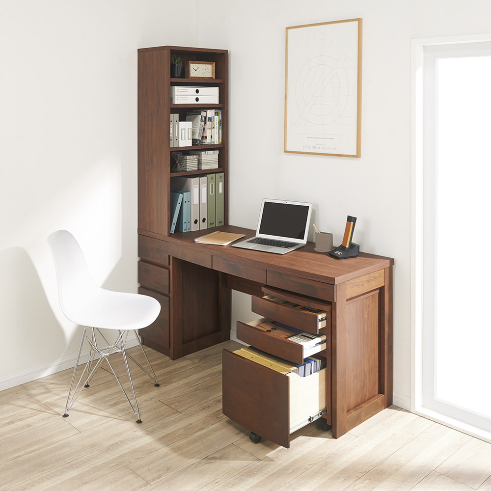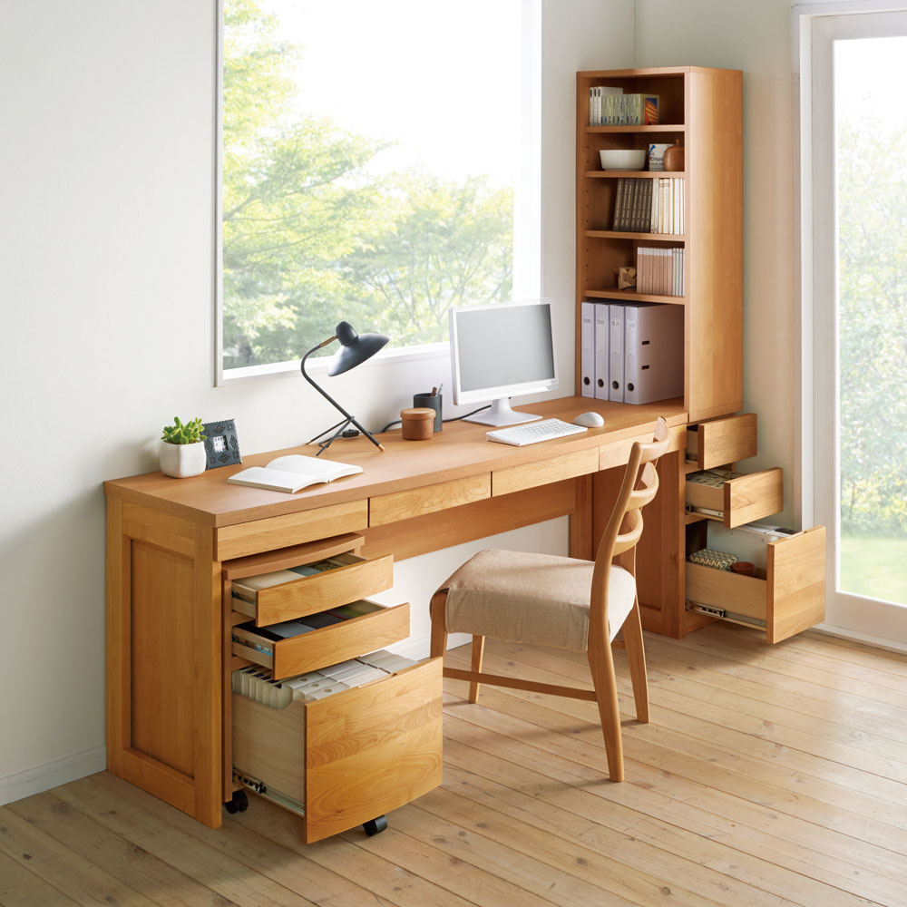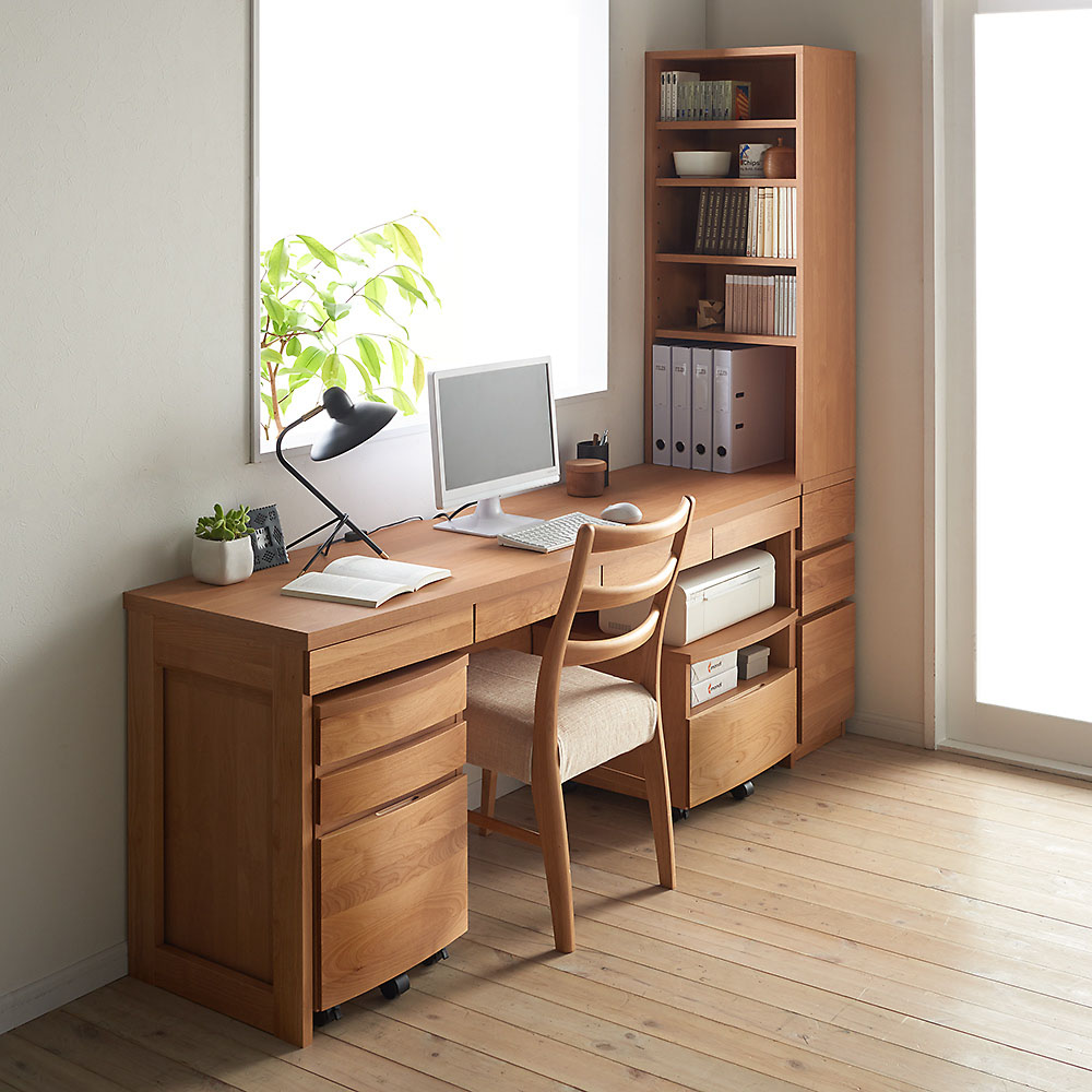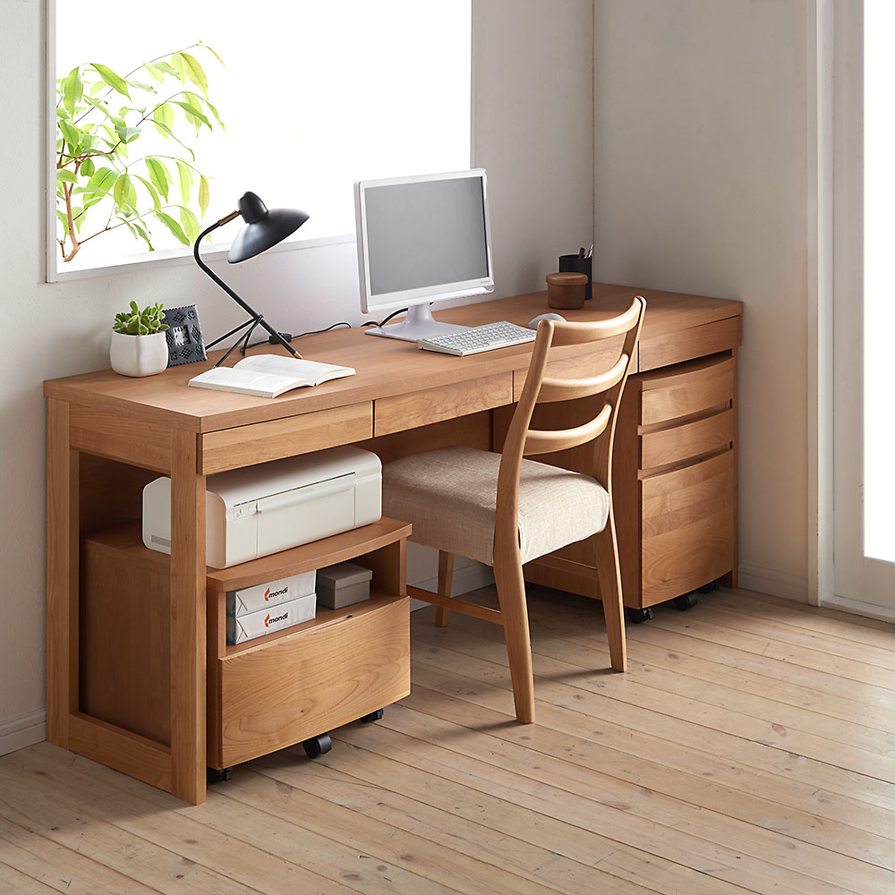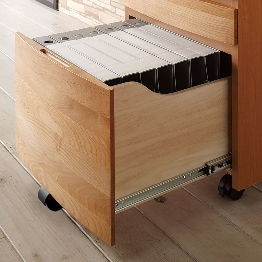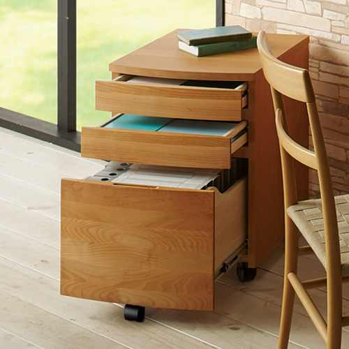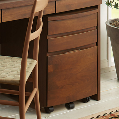 「しっとりとした質感となめらかな曲線美が見事に調和したデスクシリーズ」上質な素材と美しい曲線が織りなす、心安らぐクリエイティブなひととき。お部屋を格調高くコーディネイトする、おしゃれでオススメな袖机。丸みのあるアルダー天然木が醸し出すやさしくて柔らかなパーソナルタイムに包まれて◆バイオリン・ギター作りに使われてきた、大人気のアルダー材を贅沢に使用。思わず触りたくなる上質感です。◆アールデザイン加工が、柔らかくて品のある印象を際立たせています。◆ナチュラルなデザインはグリーンとの相性もよく、インテリアとしてもオシャレな印象に。◆引き出しは箱組と呼ばれる頑丈な造り、スライドレール付きで開閉や出し入れもラクラクです。◆上品なたたずまいは、書斎からリビングやダイニング、ベッドルームまで幅広いシーンで活躍します。◆優れた素材&国内の職人による丁寧な仕上げは、子どもの学習机としてもおすすめ。◆完成品でのお届けで、届いてすぐにお使いいただけるのもポイントの1つです。◆シリーズにはデスク・サイドチェスト・プリンターワゴンをラインナップ。◆「アルダー天然木アールデザインテレビ台・チェスト・キャビネット・サイドボード」と合わせてご検討ください。