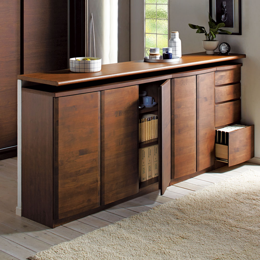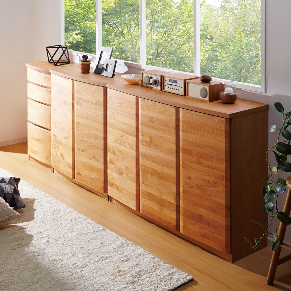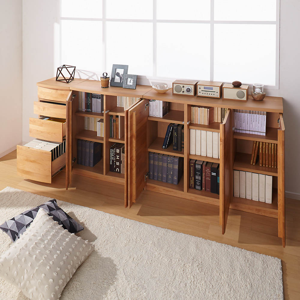 優雅な素材と曲面が生み出す、クラス感のある上質な大人のウッドブックラック。アルダー材の上質感と曲面の柔らかさが美しく調和。サイズも豊富にご用意したおすすめの木製書棚シリーズです。ワンランク上の上質な大人時間を演出◆バイオリン・ギター作りに使われてきた、大人気のアルダー材を扉に贅沢に採用。思わず触りたくなる上質感です。◆アールデザイン加工が、柔らかくて品のある印象を際立たせています。◆ナチュラルなデザインはグリーンとの相性もよく、インテリアとしてもオシャレな印象に。◆すっきりとしたプッシュ式の扉には、ウレタン塗装を施しており、お手入れがしやすく耐久性も備えてます。◆華美な印象でも棚板はがっちり頑丈。高級な棚ダボも使用しており、大量収納もお任せです。◆上品なたたずまいは、書斎からリビングやダイニング、ベッドルームまで幅広いシーンで活躍します。◆また、リビングボード・ローボード・CDラック・DVDラック・コミックラックなど、用途もさまざま。◆優れた素材&国内の職人による丁寧な仕上げは、子供部屋収納としてもおすすめ。◆目の肥えた他ジャンルのバイヤーも自宅で使用しており、納得の完成度でオススメしています。◆完成品でのお届けで、届いてすぐにお使いいただけるのもポイントの1つです。◆シリーズには、引き出し・ロータイプ本棚・ハイタイプ本棚をラインナップ。◆アルダー天然木アールデザインテレビ台・チェスト・キャビネット・サイドボード・デスクシリーズと合わせてご検討ください。優しく癒されるアールデザイン前面にはアルダー天然木を贅沢に使い、こだわりのアールデザインで仕上げました。優美な佇まいとナチュラルで上質な素材感が、書斎を格調高く演出します。