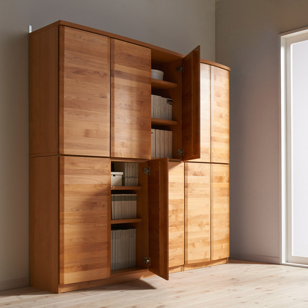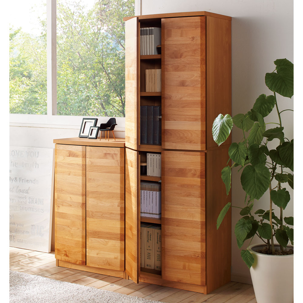 優雅な素材と曲面が生み出す、クラス感のある上質な大人のウッドブックラック。アルダー材の上質感と曲面の柔らかさが美しく調和。サイズも豊富にご用意したおすすめの木製書棚シリーズです。ワンランク上の上質な大人時間を演出◆バイオリン・ギター作りに使われてきた、大人気のアルダー材を扉に贅沢に採用。思わず触りたくなる上質感です。◆アールデザイン加工が、柔らかくて品のある印象を際立たせています。◆ナチュラルなデザインはグリーンとの相性もよく、インテリアとしてもオシャレな印象に。◆すっきりとしたプッシュ式の扉には、ウレタン塗装を施しており、お手入れがしやすく耐久性も備えてます。◆華美な印象でも棚板はがっちり頑丈。高級な棚ダボも使用しており、大量収納もお任せです。◆上品なたたずまいは、書斎からリビングやダイニング、ベッドルームまで幅広いシーンで活躍します。◆また、リビングボード・ローボード・CDラック・DVDラック・コミックラックなど、用途もさまざま。◆優れた素材&国内の職人による丁寧な仕上げは、子供部屋収納としてもおすすめ。◆目の肥えた他ジャンルのバイヤーも自宅で使用しており、納得の完成度でオススメしています。◆完成品でのお届けで、届いてすぐにお使いいただけるのもポイントの1つです。◆シリーズには、引き出し・ロータイプ本棚・ハイタイプ本棚をラインナップ。◆アルダー天然木アールデザインテレビ台・チェスト・キャビネット・サイドボード・デスクシリーズと合わせてご検討ください。優しく癒されるアールデザイン前面にはアルダー天然木を贅沢に使い、こだわりのアールデザインで仕上げました。優美な佇まいとナチュラルで上質な素材感が、書斎を格調高く演出します。