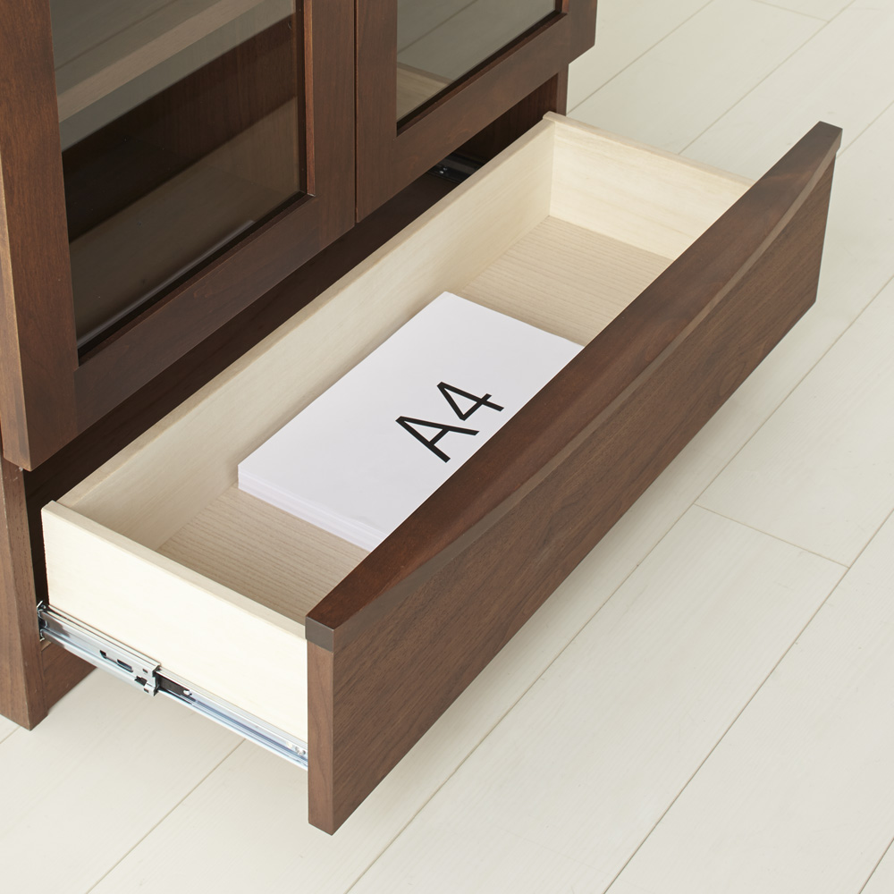 引き出しはA4を並べられて収納力があります。引き出し内寸:幅50奥行32高さ16(側板高さ10)cm