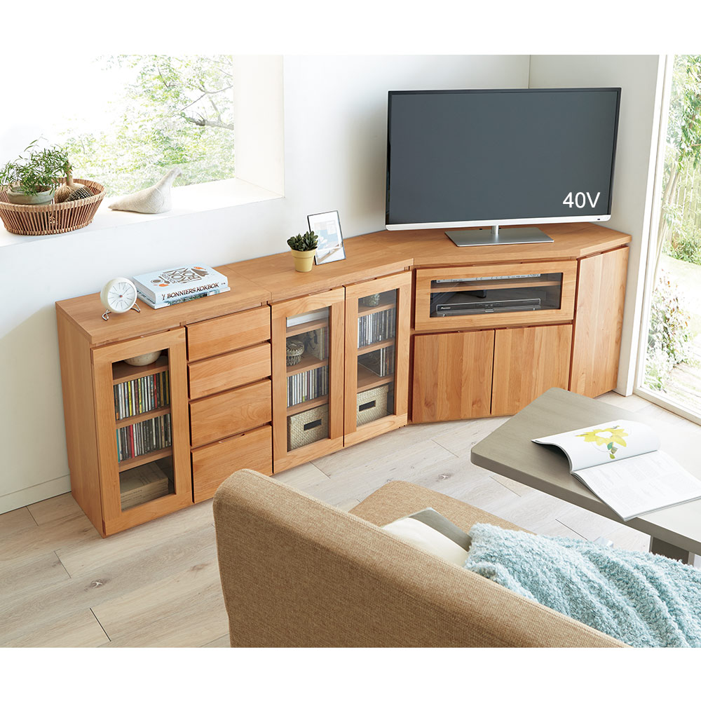 ソファダイニングからゆったり映画鑑賞を楽しめる、高さにこだわったテレビ台。あたたかみのあるアルダー天然木を使用しお部屋に木のやさしい風合いをプラスできるリビングボードシリーズ。人気のLD兼用ダイニングセットやベッドルームにおすすめのテレビ台◆高さ70cmとやや高めの設計で、椅子に座った視線にフィット。◆省スペースにこだわったコーナータイプのテレビ台です。◆コーナータイプはお部屋に合わせて左右を選べる2タイプをご用意。お部屋に馴染むナチュラルなデザイン◆自然にお部屋に溶け込むナチュラルなテイストのリビングボードシリーズ。◆毎日の使いやすさを考えた機能と、インテリアがランクアップする上質なデザインのハイタイプテレビ台。収納力や機能も充実したシリーズ商品◆収納力のある引き出しも魅力です。CD、DVDはもちろん子供のおもちゃやゲームなども収納できます。◆扉キャビネットはガラス扉でおしゃれに飾って収納してもおすすめです。◆テレビ台のフラップ扉内にはデッキを2台収納できます。◆収納に便利なチェストタイプもご用意しました。安心してお使いいただける国内生産商品です◆国内の工場で丁寧に設計・生産された商品です。◆ホルムアルデヒドの発生を最小限に抑えたF☆☆☆☆の素材を使用しております。