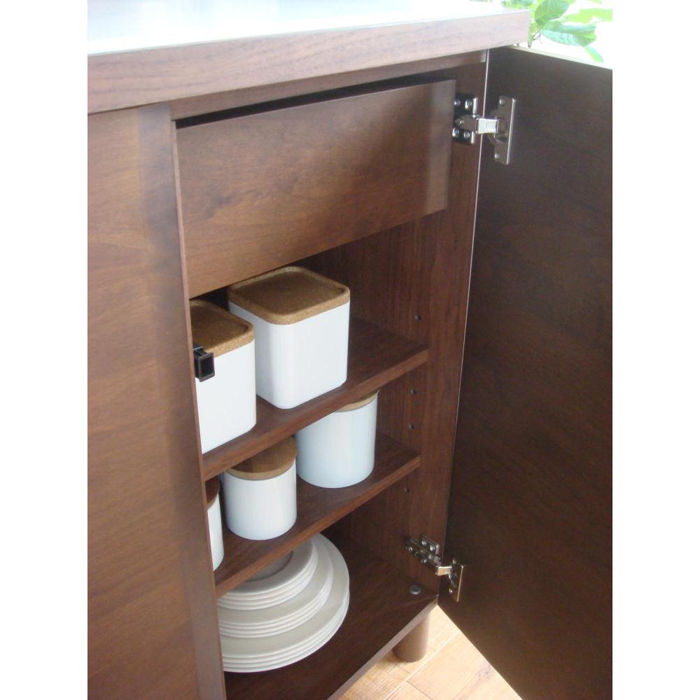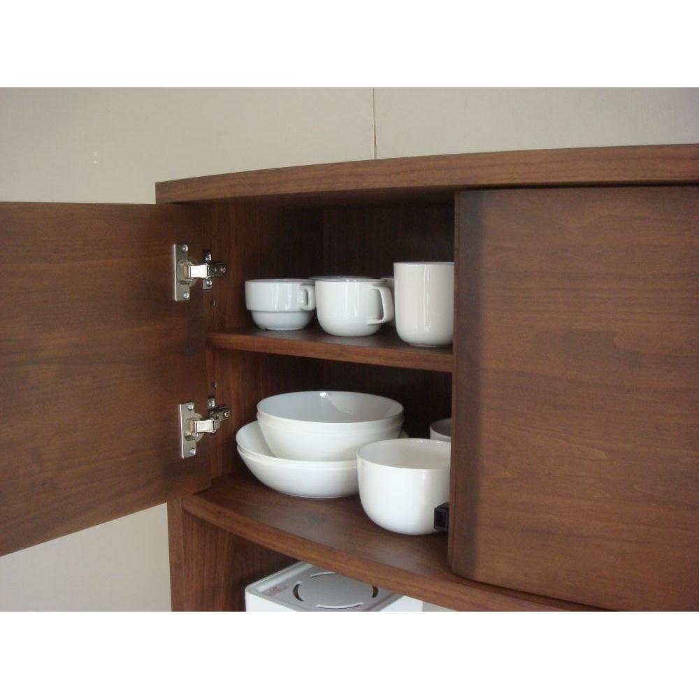 美しい曲線デザインとアルダー天然木のあたたかみあるキッチン収納。(イ)ダークブラウン
