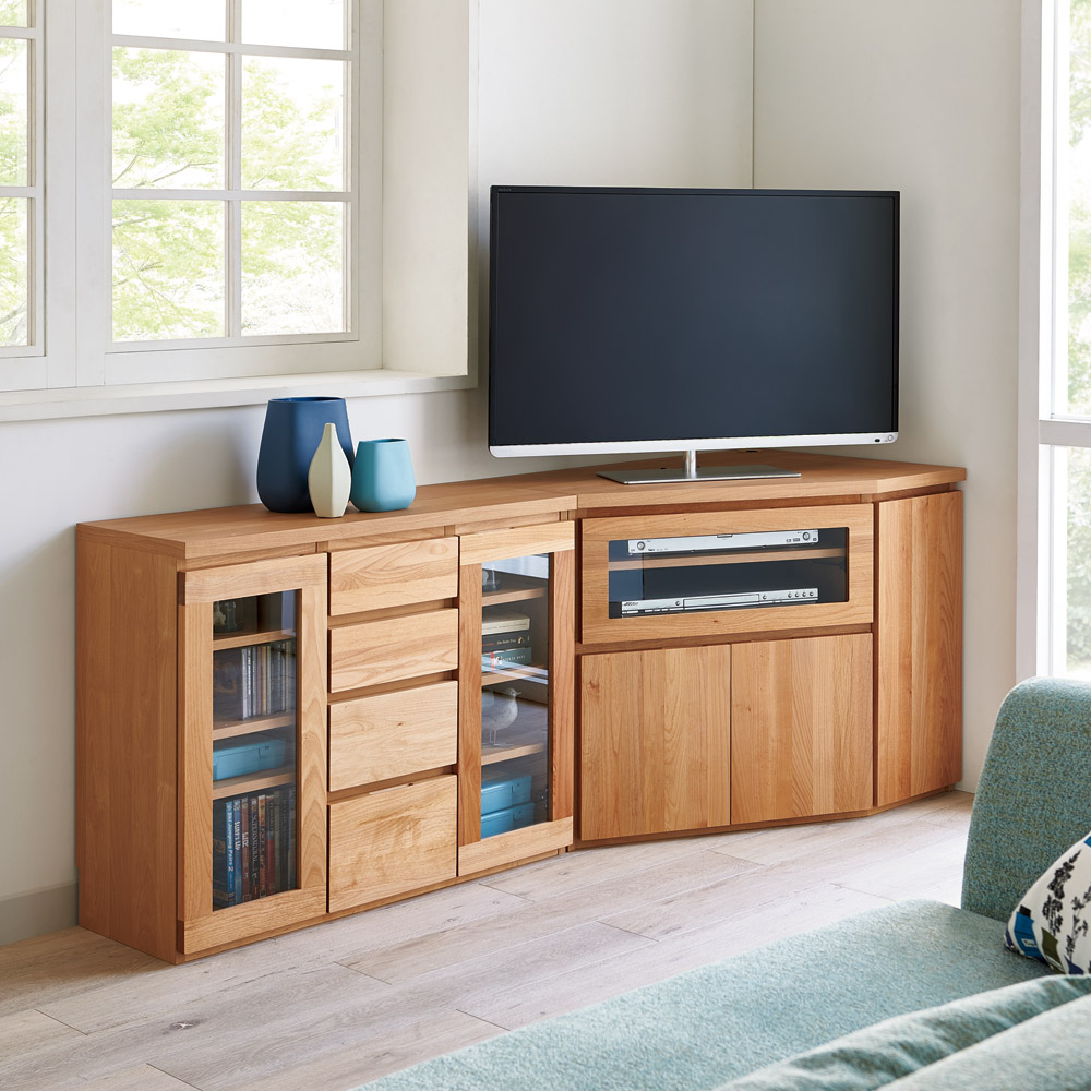 ソファダイニングからゆったり映画鑑賞を楽しめる、高さにこだわったテレビ台。あたたかみのあるアルダー天然木を使用しお部屋に木のやさしい風合いをプラスできるリビングボードシリーズ。人気のLD兼用ダイニングセットやベッドルームにおすすめのテレビ台と扉チェスト◆高さ70cmとやや高めの設計で、椅子に座った視線にフィット。◆省スペースにこだわったコーナータイプのテレビ台です。◆コーナータイプはお部屋に合わせて左右を選べる2タイプをご用意。お部屋に馴染むナチュラルなデザイン◆自然にお部屋に溶け込むナチュラルなテイストのリビングボードシリーズ。◆毎日の使いやすさを考えた機能と、インテリアがランクアップする上質なデザインのハイタイプテレビ台。収納力や機能も充実したシリーズ商品◆収納力のある引き出しも魅力です。CD、DVDはもちろん子供のおもちゃやゲームなども収納できます。◆扉キャビネットはガラス扉でおしゃれに飾って収納してもおすすめです。◆テレビ台のフラップ扉内にはデッキを2台収納できます。◆収納に便利なチェストタイプもご用意しました。安心してお使いいただける国内生産商品です◆国内の工場で丁寧に設計・生産された商品です。◆ホルムアルデヒドの発生を最小限に抑えたF☆☆☆☆の素材を使用しております。