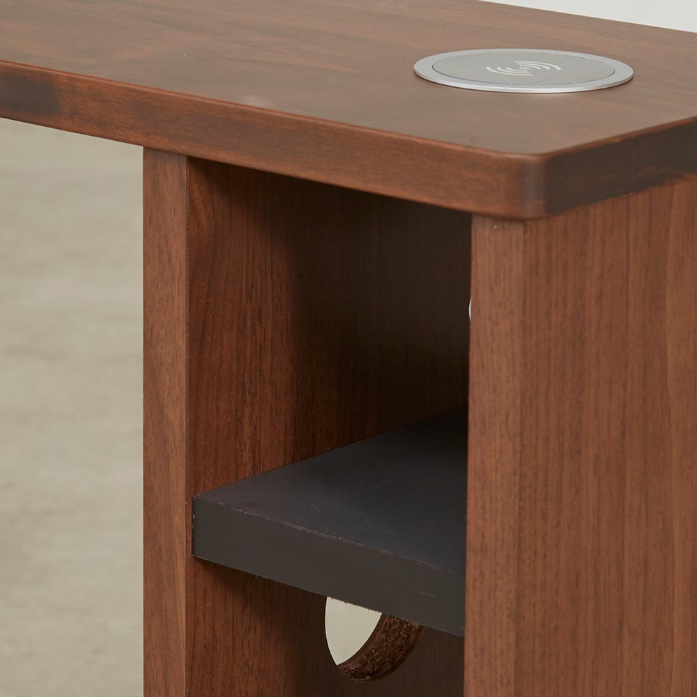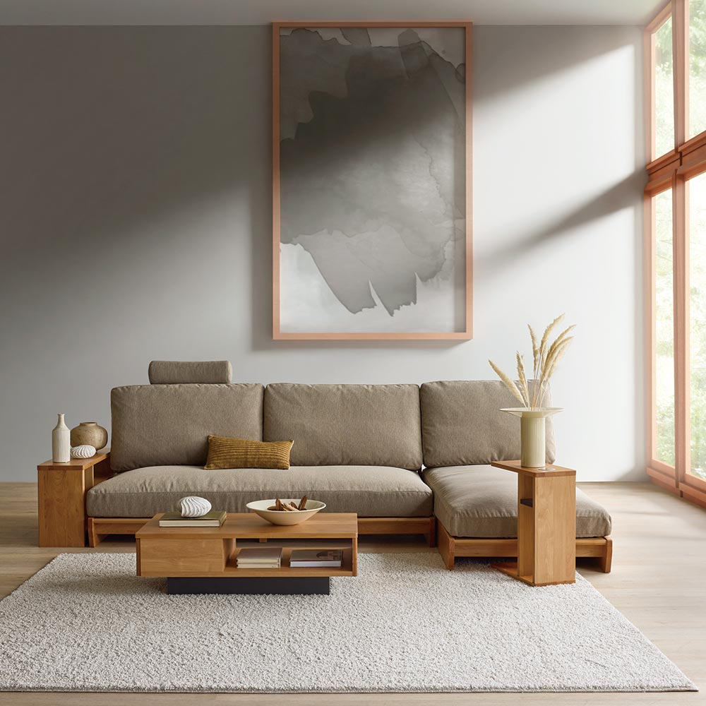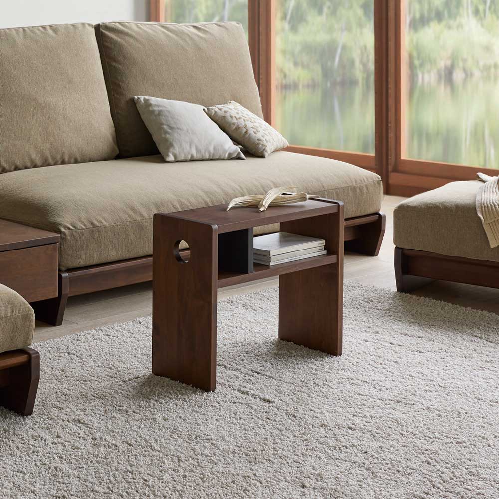 Arietta/アリエッタソファシリーズに取り入れたいサイドテーブル。縦横2ウェイで使えるテーブルには、携帯電話を奥だけで充電できる充電器がついています。縦置きで座面に挟んで、横置きでソファ前や横で。便利に使用できるソファテーブルです。日々の使いやすさを叶えるプラス機能をソファまわりに。