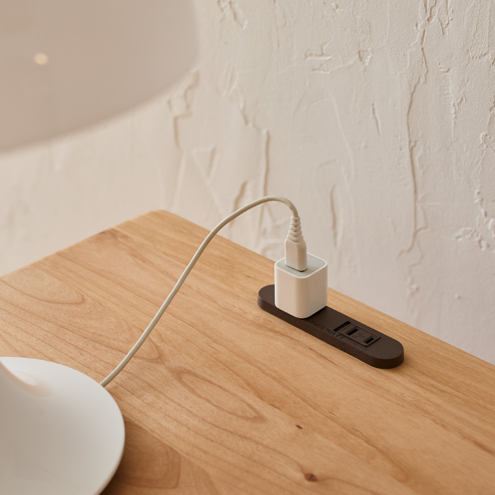 ナイトテーブル上には充電などに便利な2口コンセント付き。