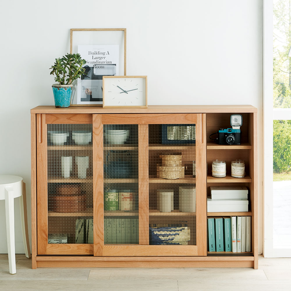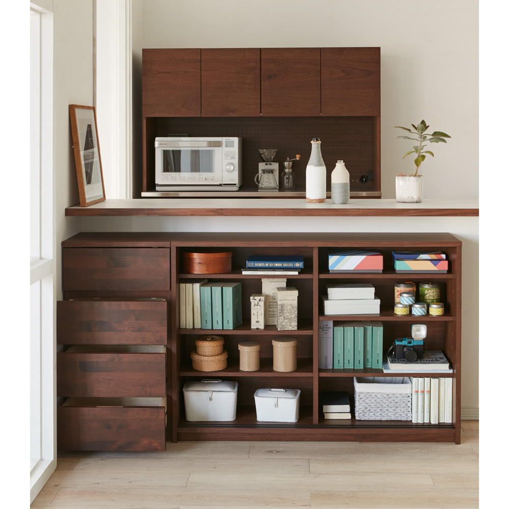 設置場所を選ばない省スペース設計ながらおしゃれなデザインとアルダー無垢材、クロスガラスなどを贅沢に使用したハイクオリティ。限られた空間で最大限に心地よく素敵に暮らす“コンパクト・リッチ”を叶えます。コンパクトさとハイクオリティを兼ね備えて ピッピ カウンター下収納シリーズ無垢材とクロスガラスを贅沢に使用した、上質感たっぷりな引き戸式のキッチン収納シリーズ。光をはじいてキッチンをより明るく見せてくれるクロスガラスや持機能的ですっきりとした取っ手など、大人の遊び心を感じさせるビジュアルも魅力。全体的にコンパクトなサイズ感に抑え、昨今の日本の住宅事情に合わせた設計で憧れの北欧風キッチンを簡単に再現できるシリーズです。天然木でもお手入れ簡単、水周りでも安心なウレタン塗装◆優しい風合いと存在感が魅力の天然木だけれど、お手入れが面倒…?そんなことはありません。◆天然木部分にはウレタン塗装を施し、水や汚れに配慮。さっと拭き取れば元通りの美しさに。◆ウレタン塗装は一般的なダイニングテーブルにも使用されるものです。◆天然木の表情がまるで憧れの輸入キッチンのような雰囲気を感じさせてくれるレンジ台です。光を弾くクロスガラスは美しいだけでなく、キッチンにふさわしい機能的な素材。◆前面に使用されたクロスガラスは、光を反射して美しい素材。◆きれいなだけでなく、収納物をうっすらと目隠しして雑多な印象を与えない効果も。◆内部に色や柄付きの食器をたくさん収納しても、すっきりとした印象を与えてくれます。◆クロスガラスは光を優しく反射して、キッチンを明るい印象にしてくれる点も魅力。たっぷりの小さな引き出しで、誰でも整理整頓が簡単に。◆チェストタイプは小引き出しで、迷子になりがちなリビング小物・キッチン小物を分類収納。◆乾電池や常備薬、キッチン雑貨やカトラリーまで、散らばる小物をまとめて収納。◆すべての引き出しには脱落防止のストッパー付きの、安心設計です。狭いキッチンの限られた空間でもたっぷり収納。開閉スペース不要の引き戸◆スライド引き戸の扉で、開閉スペースを不要にすることで、とことん省スペースに。◆家事の動線を邪魔しない、大量収納が魅力の食器棚です。◆可動棚を収納物に合わせてセットすれば、無駄なく効率的なスペースの活用が簡単に叶います。軽々開け閉めをサポートする、レール付き引き戸でストレスフリーなカップボード◆大きな引き戸には、軽い力で開け閉めできるレールタイプを採用。◆大きな扉でも、無理のない力で動かすことができます。キッチンカウンター下にピッタリな薄型で空間を有効活用できるアイデア収納。◆スリムな薄型収納で、キッチンカウンター下のデッドスペースにもピッタリ収まります。◆薄型でも収納力たっぷり。中皿や小鉢、買い置きの缶詰や瓶詰をまとめて。◆食器棚・キッチンストッカーとしてもお勧めの隙間収納です。奥行浅めの薄型収納は、設置場所を選ばずリビング収納・書棚としても。◆薄型収納は窓下や廊下・リビングの空きスペースなどカウンター下以外のデッドスペースも有効活用。◆廊下や寝室の窓下に設置して書斎・本棚に収まりきらない雑誌収納やCD収納、DVD収納としても。◆リビングの窓下などに設置すれば、FAX台や電話台、ローボード・窓下収納としても活躍。◆リビングやベッドルーム・書斎に散らばりがちな小物、生活雑貨をまとめて。巾木カット付きで壁ぴったり設置できるアイデア収納◆せっかくの薄型収納でも、壁との間に無駄なスペースがあっては意味がありません。◆10cm×1cmの巾木カットで壁ぴったりに設置できます。どんなお部屋にもなじむ選べる2色展開◆シックで落ち着いた色合いの『ダークブラウン』◆明るい色合いでお部屋を可愛らしく見せる『ナチュラル』◆ダイニングキッチンのインテリアになじむデザインで、あっという間におしゃれなキッチン周りに。安心と信頼の職人技が光る国産のキッチン収納◆熟練の家具職人がひとつずつ丁寧に仕上げたワンランク上のダイニングボード・食器棚です。◆細部の丁寧な仕上がりなど日本製ならではの高品質なキッチンボード・カップボードをお楽しみください。◆素材はJIS規格の定める安全性の高いF☆☆☆☆を使用しました。面倒な組み立てのいらない完成商品◆完成品でのお届けになりますので届いたその日からお使いになれます。