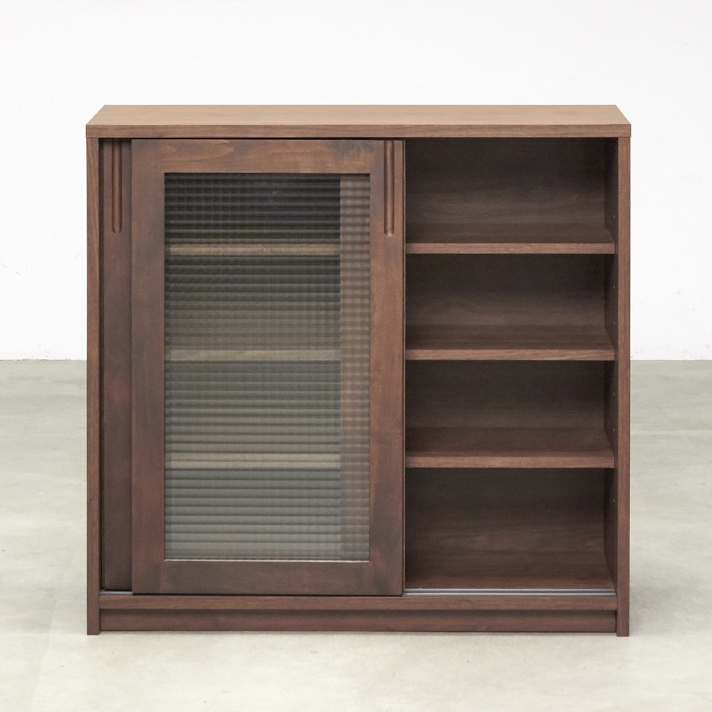 設置場所を選ばない省スペース設計ながらおしゃれなデザインとアルダー無垢材、クロスガラスなどを贅沢に使用したハイクオリティ。限られた空間で最大限に心地よく素敵に暮らす“コンパクト・リッチ”を叶えます。コンパクトさとハイクオリティを兼ね備えて ピッピ カウンター下収納シリーズ無垢材とクロスガラスを贅沢に使用した、上質感たっぷりな引き戸式のキッチン収納シリーズ。光をはじいてキッチンをより明るく見せてくれるクロスガラスや持機能的ですっきりとした取っ手など、大人の遊び心を感じさせるビジュアルも魅力。全体的にコンパクトなサイズ感に抑え、昨今の日本の住宅事情に合わせた設計で憧れの北欧風キッチンを簡単に再現できるシリーズです。天然木でもお手入れ簡単、水周りでも安心なウレタン塗装◆優しい風合いと存在感が魅力の天然木だけれど、お手入れが面倒…?そんなことはありません。◆天然木部分にはウレタン塗装を施し、水や汚れに配慮。さっと拭き取れば元通りの美しさに。◆ウレタン塗装は一般的なダイニングテーブルにも使用されるものです。◆天然木の表情がまるで憧れの輸入キッチンのような雰囲気を感じさせてくれるレンジ台です。光を弾くクロスガラスは美しいだけでなく、キッチンにふさわしい機能的な素材。◆前面に使用されたクロスガラスは、光を反射して美しい素材。◆きれいなだけでなく、収納物をうっすらと目隠しして雑多な印象を与えない効果も。◆内部に色や柄付きの食器をたくさん収納しても、すっきりとした印象を与えてくれます。◆クロスガラスは光を優しく反射して、キッチンを明るい印象にしてくれる点も魅力。たっぷりの小さな引き出しで、誰でも整理整頓が簡単に。◆チェストタイプは小引き出しで、迷子になりがちなリビング小物・キッチン小物を分類収納。◆乾電池や常備薬、キッチン雑貨やカトラリーまで、散らばる小物をまとめて収納。◆すべての引き出しには脱落防止のストッパー付きの、安心設計です。狭いキッチンの限られた空間でもたっぷり収納。開閉スペース不要の引き戸◆スライド引き戸の扉で、開閉スペースを不要にすることで、とことん省スペースに。◆家事の動線を邪魔しない、大量収納が魅力の食器棚です。◆可動棚を収納物に合わせてセットすれば、無駄なく効率的なスペースの活用が簡単に叶います。軽々開け閉めをサポートする、レール付き引き戸でストレスフリーなカップボード◆大きな引き戸には、軽い力で開け閉めできるレールタイプを採用。◆大きな扉でも、無理のない力で動かすことができます。キッチンカウンター下にピッタリな薄型で空間を有効活用できるアイデア収納。◆スリムな薄型収納で、キッチンカウンター下のデッドスペースにもピッタリ収まります。◆薄型でも収納力たっぷり。中皿や小鉢、買い置きの缶詰や瓶詰をまとめて。◆食器棚・キッチンストッカーとしてもお勧めの隙間収納です。奥行浅めの薄型収納は、設置場所を選ばずリビング収納・書棚としても。◆薄型収納は窓下や廊下・リビングの空きスペースなどカウンター下以外のデッドスペースも有効活用。◆廊下や寝室の窓下に設置して書斎・本棚に収まりきらない雑誌収納やCD収納、DVD収納としても。◆リビングの窓下などに設置すれば、FAX台や電話台、ローボード・窓下収納としても活躍。◆リビングやベッドルーム・書斎に散らばりがちな小物、生活雑貨をまとめて。巾木カット付きで壁ぴったり設置できるアイデア収納◆せっかくの薄型収納でも、壁との間に無駄なスペースがあっては意味がありません。◆10cm×1cmの巾木カットで壁ぴったりに設置できます。どんなお部屋にもなじむ選べる2色展開◆シックで落ち着いた色合いの『ダークブラウン』◆明るい色合いでお部屋を可愛らしく見せる『ナチュラル』◆ダイニングキッチンのインテリアになじむデザインで、あっという間におしゃれなキッチン周りに。安心と信頼の職人技が光る国産のキッチン収納◆熟練の家具職人がひとつずつ丁寧に仕上げたワンランク上のダイニングボード・食器棚です。◆細部の丁寧な仕上がりなど日本製ならではの高品質なキッチンボード・カップボードをお楽しみください。◆素材はJIS規格の定める安全性の高いF☆☆☆☆を使用しました。面倒な組み立てのいらない完成商品◆完成品でのお届けになりますので届いたその日からお使いになれます。