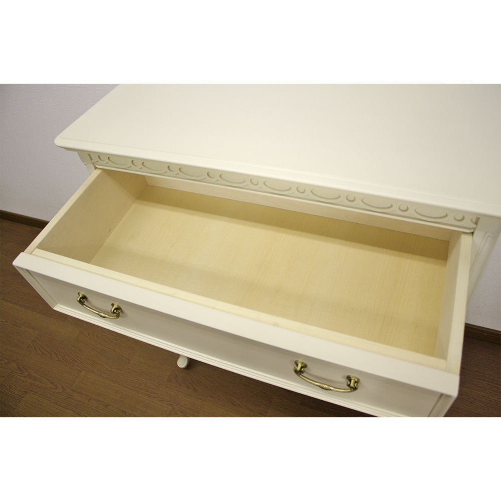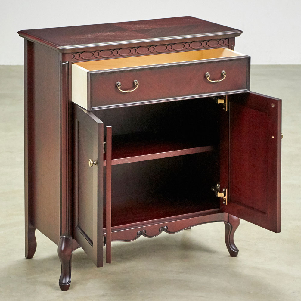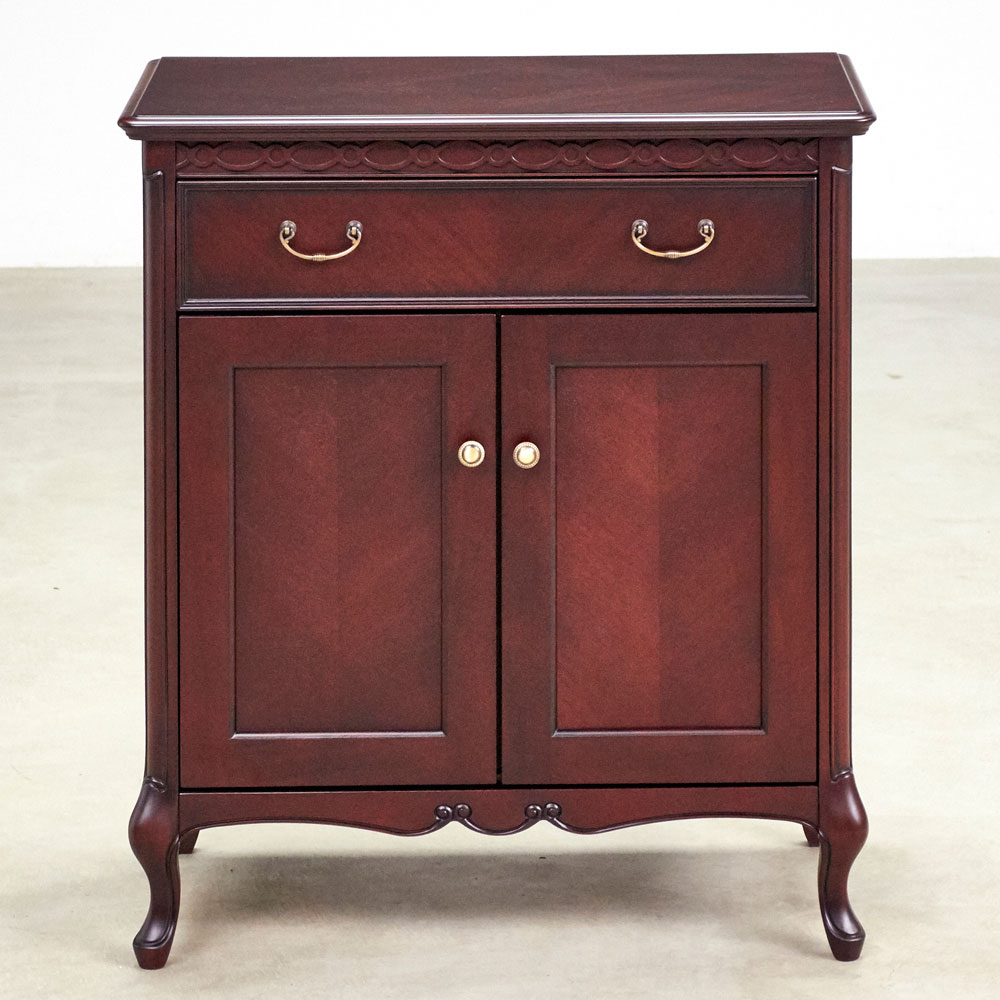 優雅さ薫る人気のクラシック家具シリーズの収納付きコンソールテーブルが登場。映画にでてくるようなヨーロピアン調のインテリア空間が叶う花台です。矢羽模様のダークブラウンとフレンチ風のお部屋コーディネートができるホワイトの2色をご用意しました。格調高いエレガンスが薫る正統派クラシックデザインコンソール●矢羽模様と猫脚のディテールが美しい収納家具で優雅なリビング・エントランスシーンを。●高級家具の代名詞的な素材:マホガニーの特徴を生かした格調の高い仕上がりになっています。●脚部や前面の曲線美など、伝統の装飾を施したデザインは現代でも色あせる事なく輝きます。●華やかに空間を彩るクラシック家具はリビングや寝室、玄関インテリアにおすすめです。●リビングダイニングの収納に便利な引き出し&棚収納付き。●日本の住宅に置きやすいよう薄型コンパクトサイズ設計です。●ご自宅でのくつろぎの時間やおもてなしのひと時を彩るトラディショナルなインテリア家具です。●細部のデザインにもこだわりました。アンティークなひと時をお楽しみください。アンティーク調家具の特徴●伝統的で落ち着いた深い色合いと重厚感が特徴的なヨーロッパスタイルです。●素材にはマホガニーなど銘木といわれるものを使用するのも特徴です。●流行に左右される事なく、使えば使うほどに味わい深くなるのでアンティーク家具としても有名です。本物志向のあなたに送る匠の逸品をお楽しみください●熟練の職人たちがひとつずつ、丁寧に仕上げました。●ヨーロッパ家具やアンティーク家具とのコーディネートのでお部屋の雰囲気もヨーロピアンに。●ハウススタイリングが自信を持ってお勧めするクラシック家具・輸入インテリアをお楽しみください。