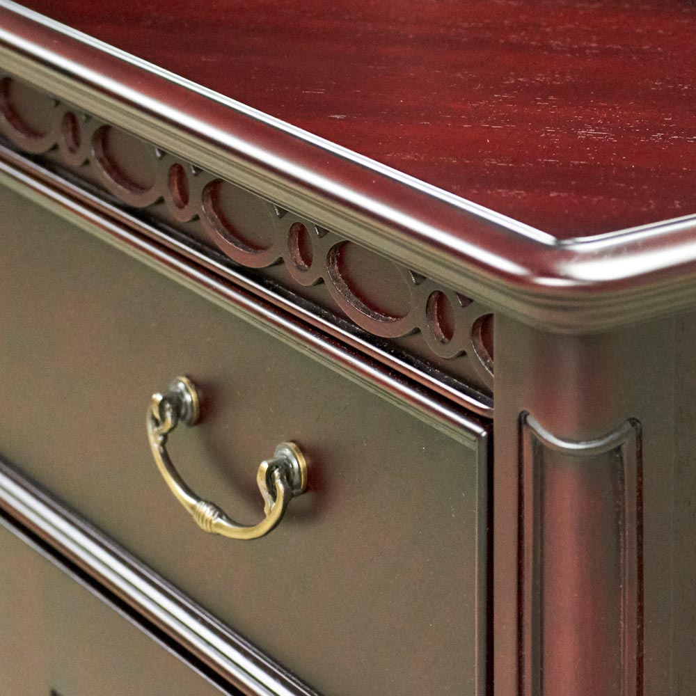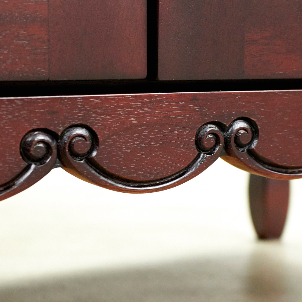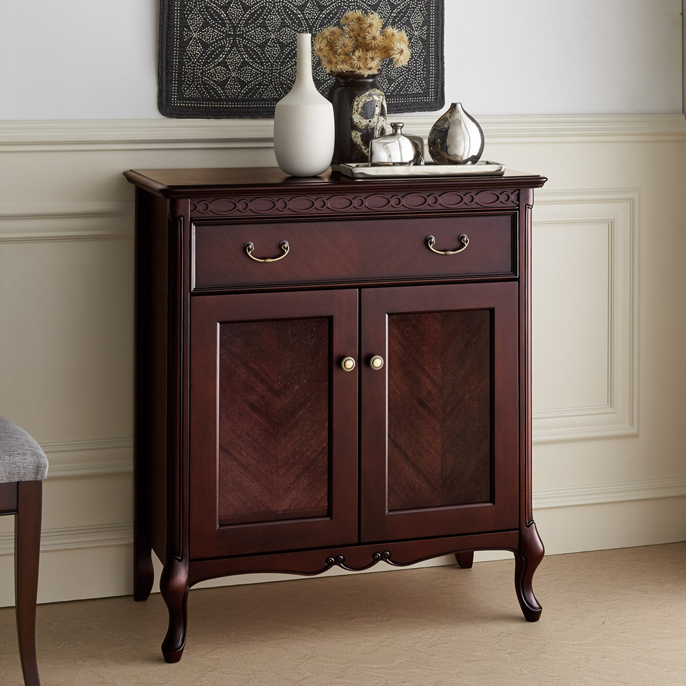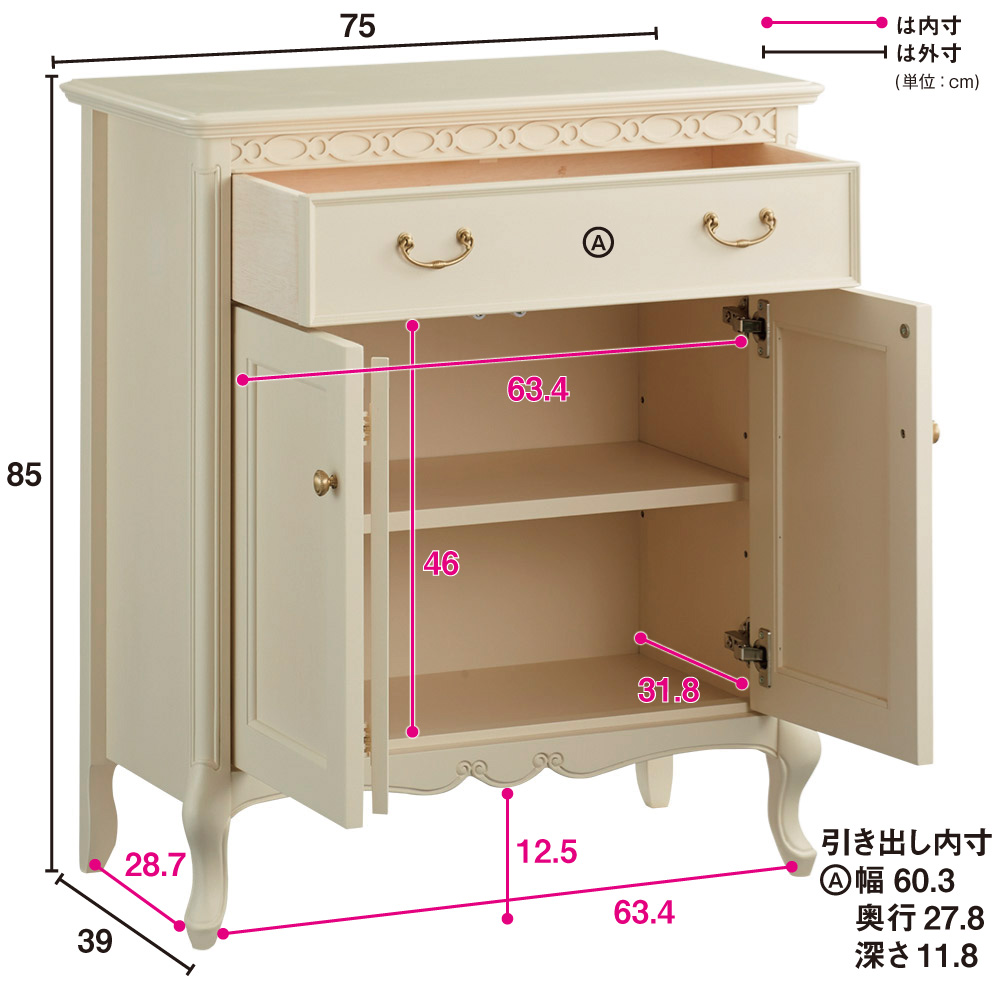 優雅さ薫る人気のクラシック家具シリーズの収納付きコンソールテーブルが登場。映画にでてくるようなヨーロピアン調のインテリア空間が叶う花台です。矢羽模様のダークブラウンとフレンチ風のお部屋コーディネートができるホワイトの2色をご用意しました。格調高いエレガンスが薫る正統派クラシックデザインコンソール●矢羽模様と猫脚のディテールが美しい収納家具で優雅なリビング・エントランスシーンを。●高級家具の代名詞的な素材:マホガニーの特徴を生かした格調の高い仕上がりになっています。●脚部や前面の曲線美など、伝統の装飾を施したデザインは現代でも色あせる事なく輝きます。●華やかに空間を彩るクラシック家具はリビングや寝室、玄関インテリアにおすすめです。●リビングダイニングの収納に便利な引き出し&棚収納付き。●日本の住宅に置きやすいよう薄型コンパクトサイズ設計です。●ご自宅でのくつろぎの時間やおもてなしのひと時を彩るトラディショナルなインテリア家具です。●細部のデザインにもこだわりました。アンティークなひと時をお楽しみください。アンティーク調家具の特徴●伝統的で落ち着いた深い色合いと重厚感が特徴的なヨーロッパスタイルです。●素材にはマホガニーなど銘木といわれるものを使用するのも特徴です。●流行に左右される事なく、使えば使うほどに味わい深くなるのでアンティーク家具としても有名です。本物志向のあなたに送る匠の逸品をお楽しみください●熟練の職人たちがひとつずつ、丁寧に仕上げました。●ヨーロッパ家具やアンティーク家具とのコーディネートのでお部屋の雰囲気もヨーロピアンに。●ハウススタイリングが自信を持ってお勧めするクラシック家具・輸入インテリアをお楽しみください。