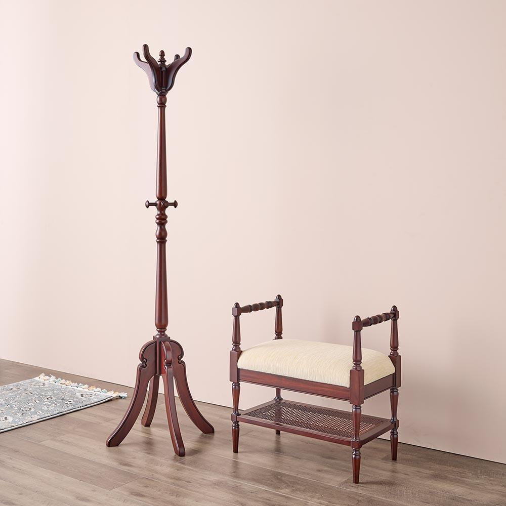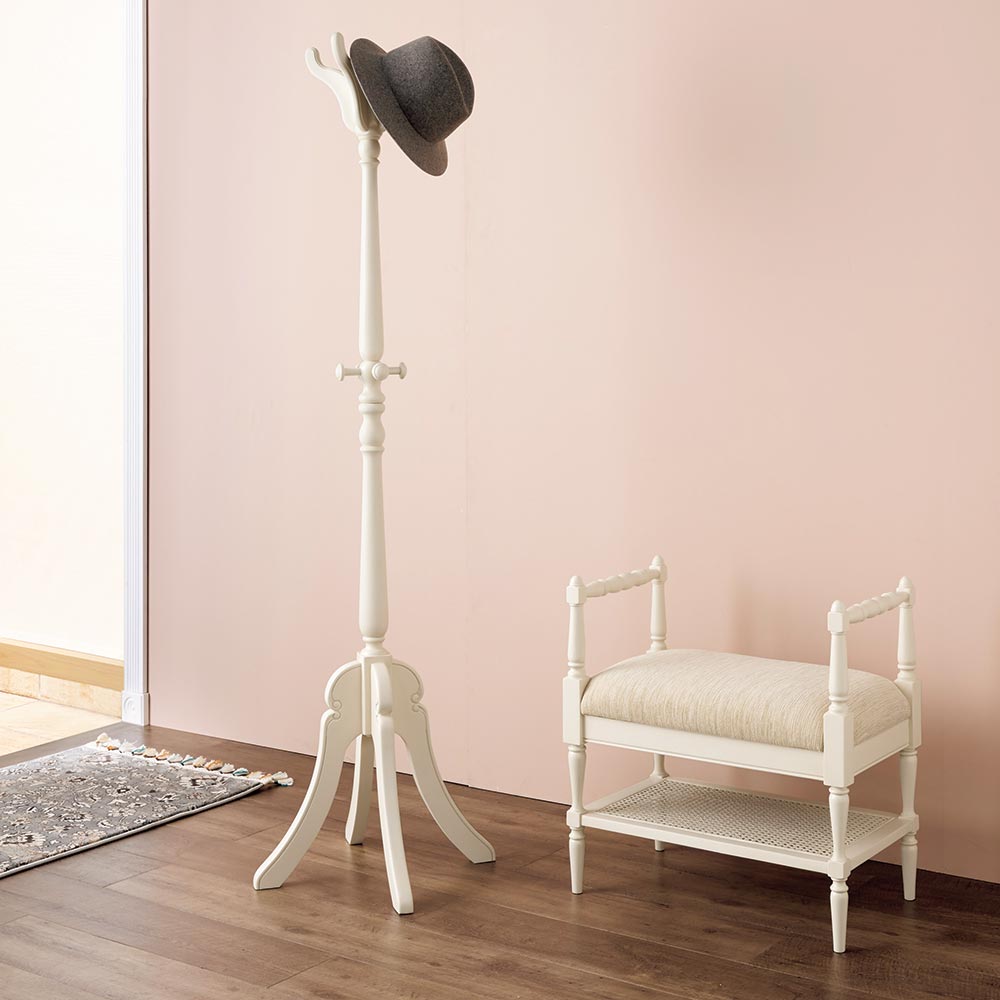 精緻な装飾技と細部まで凝ったアンティークデザイン。自分らしさを演出する2色から選べるヨーロッパ風クラシックデザイン。大人の空間を演出するヨーロピアンスタイルデザイン優雅さ薫る人気のクラシック家具シリーズのコートハンガーが登場。ディティールの一つ一つにエレガントな香りを漂わせます。映画にでてくるようなヨーロピアン調のインテリア空間叶うコートハンガー。フレームの色は細部に職人技が光るダークブラウンとフレンチ風のお部屋コーディネートができるホワイトの2色をご用意。ダークマホガニー色商品の特徴ゆるやかにカーブした柔らかなフェイスラインやカブリオールレッグと装飾が、上品な雰囲気と可愛らしさを際立たせているフレンチクラシックデザイン。表面に化粧張りを施したマホガニー単板、脚部にマホガニー無垢材を使い、シックで高級感のあるダークカラーに仕上げたシリーズです。ゆるやかにカーブした柔らかなラインとカブリオールレッグ(猫脚)と彫刻が上品な雰囲気と可愛らしさを際立たせています。リビング・ダイニング・ベッドルームアイテムを揃え、思うがままにトータルコーディネートが楽しめます。ホワイトウォッシュ色商品の特徴表面になめらかな木肌のリンデン材、脚部にマホガニー無垢材を使用。木肌が薄っすら見えるホワイトウォッシュ塗装で仕上げたフレンチシックエレガンスシリーズ。ゆるやかにカーブした柔らかなラインとカブリオールレッグ(猫脚)と、さりげなく可愛らしさを表現した装飾が特徴的です。思うがままにトータルコーディネートが楽しめます。届いたらすぐ使えるのが嬉しい完成品本体は組立不要。届いたらすぐ使えるのが嬉しい完成品でお届けします。