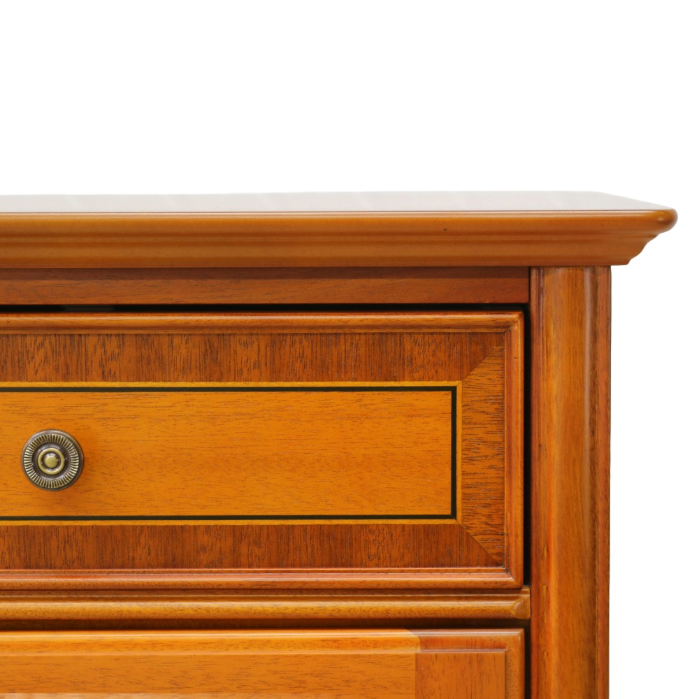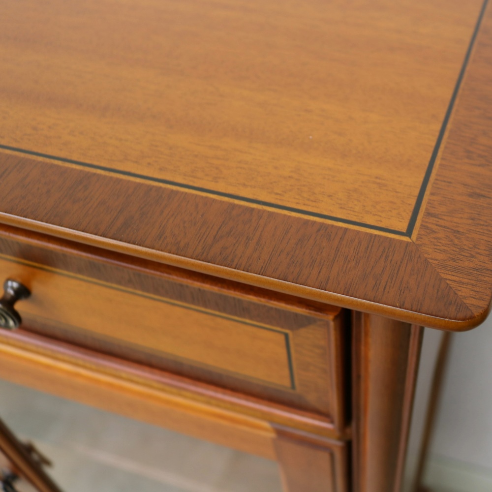 引き出しの前板は、色の違う突き板をはめ込んだ贅沢な仕上げ。