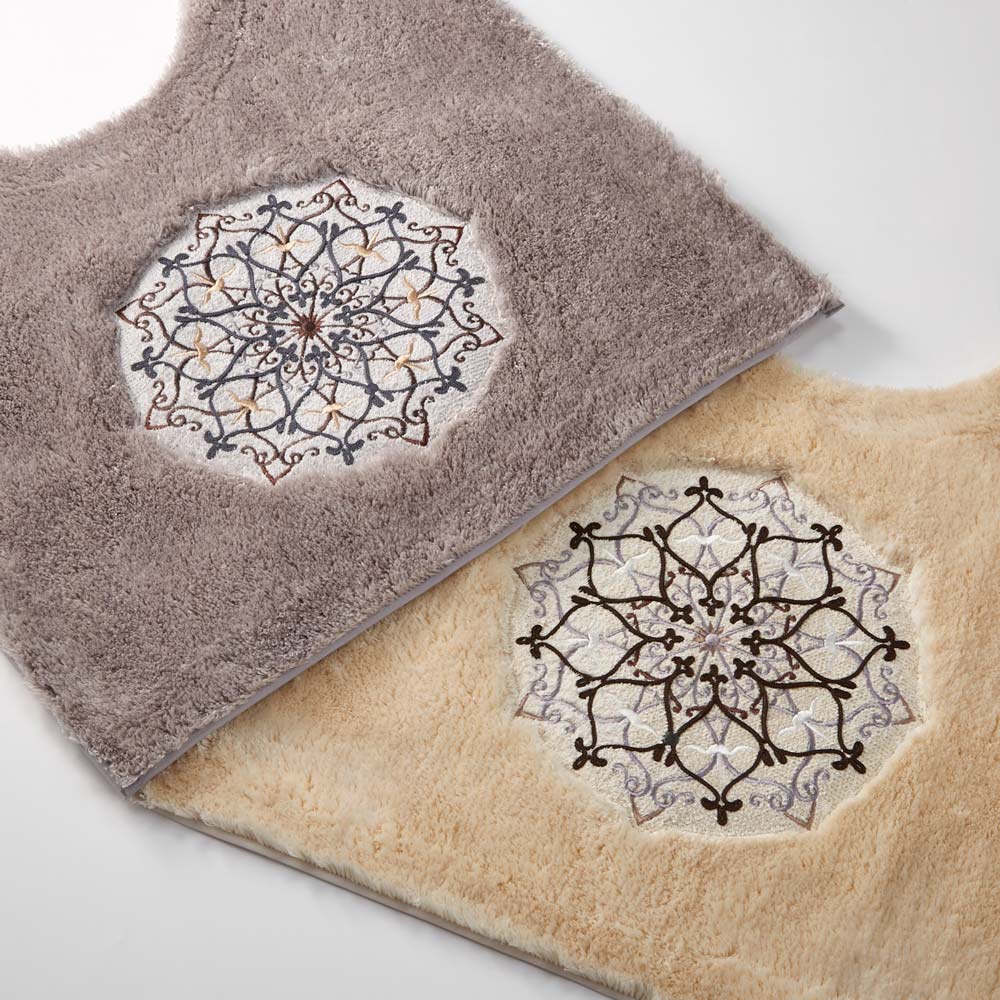 ペルシャの陶器柄をアレンジしたゴージャス感ある刺繍がラグジュアリー。モダンエレガンスなトイレマット。■立体感のある柄でトイレをグレードアップペルシャ陶器のデザイン柄「ミーナカーリー」をモチーフにした、高級感あふれるトイレマット。