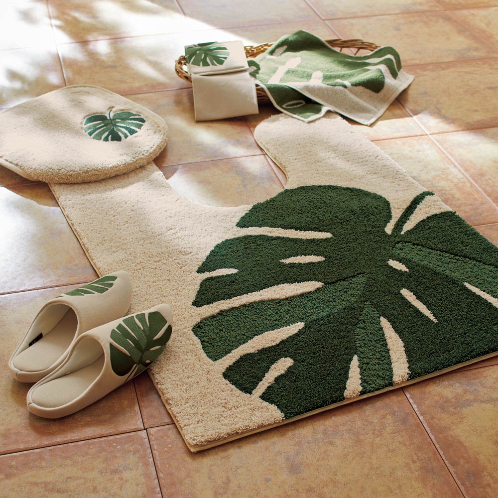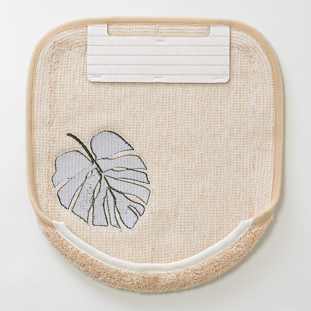 爽やかで深みのあるグリーンが効いたボタニカルデザインのフタカバー。葉の部分の色を変えることで奥行き感を表現。トイレを爽やかな空間へと演出をしてくれるトイレタリーシリーズです。安心の日本製。■爽やかで深みのあるグリーンが効いたボタニカルデザイン定番ながらも深みのあるグリーンの刺しゅうで表現されたモンステラの葉は、刺しゅう糸を2色使用することによって濃淡のある奥行きや立体感を楽しめる仕上がりです。●吸着タイプのフタカバー貼ってはがせる弱吸着タイプのフタカバーは、フタの先端にカバーを被せて、吸着シート部分をフタに装着する方式で付け外し簡単。シートは洗濯しても繰り返し使えます。フタカバー対応サイズ・・・長さ約40cm以上 幅約38〜40cm以内●抗菌防臭加工の清潔仕様抗菌防臭加工で、気になるトイレも清潔に使えます。※別売りでトイレマット、スリッパ、ペーパーホルダー、タオル、6サイズ展開のマットもご用意しています。シリーズで統一することですっきりとさわやかな空間に。【ドラム式洗濯機使用不可理由】ドラム式洗濯機の構造上、片寄りが発生しエラーや故障の原因になる可能性があるため、ドラム式洗濯機で洗うことはできません。