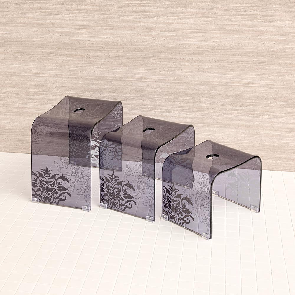 装飾的なダマスク柄をベースにして、花のモチーフを散りばめた北欧風のフラワーオーナメント柄。バスルームが華やかでモダンな雰囲気に。美しい装飾のダマスク柄のバスシリーズ花のモチーフが散りばめられた北欧風のフラワーオーナメント柄。透き通るアクリルと相まってバスルームを上品に演出します。シリーズでコーディネートすれば、統一感のある上質空間に。サミーラシリーズは、下記のラインナップをご用意しております。【バスチェア】高さの違う3サイズ展開。立ち座りしやすいLLサイズが人気です。【バスボウル】高級感があり、置くだけで絵になるウォッシュボウルです。【手湯桶】コンパクトで使いやすい、持ち手付の桶です。