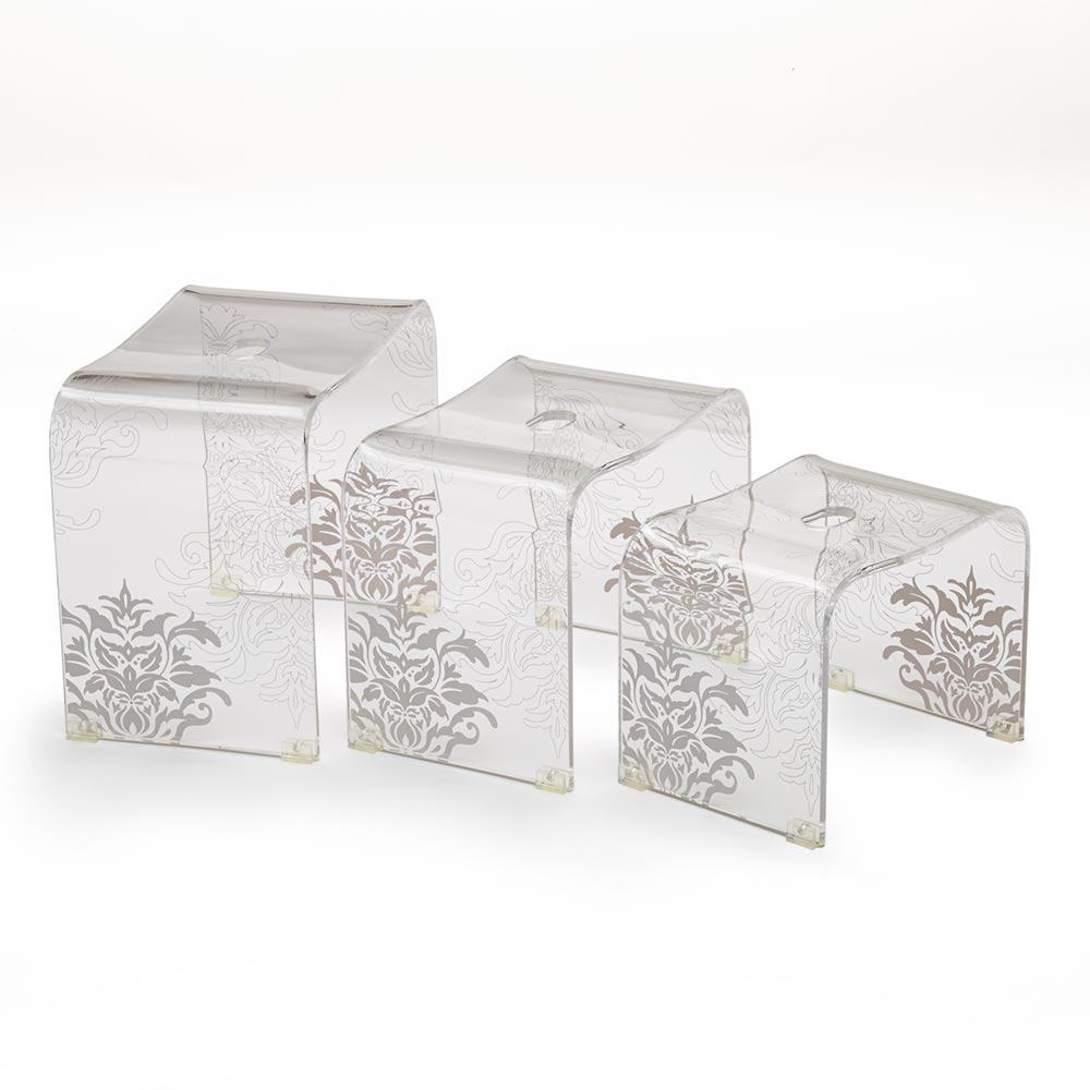 装飾的なダマスク柄をベースにして、花のモチーフを散りばめた北欧風のフラワーオーナメント柄。バスルームが華やかでモダンな雰囲気に。美しい装飾のダマスク柄のバスシリーズ花のモチーフが散りばめられた北欧風のフラワーオーナメント柄。透き通るアクリルと相まってバスルームを上品に演出します。ブルー、ブラウン(ブラウングレー)、クリアカラーの3色からお選びいただけます。シリーズでコーディネートすれば、統一感のある上質空間に。サミーラシリーズは、下記のラインナップをご用意しております。【バスチェア】高さの違う3サイズ展開。立ち座りしやすいLLサイズが人気です。【バスボウル】高級感があり、置くだけで絵になるウォッシュボウルです。【手湯桶】コンパクトで使いやすい、持ち手付の桶です。