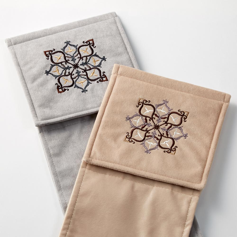 ペルシャ伝統の陶器柄をモチーフにしたトイレタリー。トイレ空間を豪華に彩ります。統一感を演出できるホルダーカバーとハンドタオルのセットです。ペルシャの陶器柄をアレンジしたゴージャス感ある刺繍がラグジュアリー。モダンエレガンスなトイレタリーシリーズ。■立体感のある柄でトイレをグレードアップペルシャ陶器のデザイン柄「ミーナカーリー」をモチーフにした、高級感あふれるトイレマット。取り入れるだけで上品でエレガントなインテリアが叶います。■洗濯可能ご家庭でお洗濯できるので、清潔を保てます(タンブラー乾燥不可)。■大胆に施されたペルシャ陶器柄のタオルどちらの向きにかけても溢れる大胆な柄が空間に高級感をもたらします。控えめながらおしゃれな柄は来客時も自慢のインテリアに。■おしゃれで人気な2色からベージュ・グレーのどちらも日本の住まいに合わせやすいカラー。シックなグレーと空間を明るく見せられるベージュ。どちらも人気の色味です。2色のコーディネートを洗濯での替えにもおすすめ。