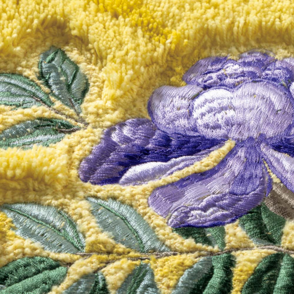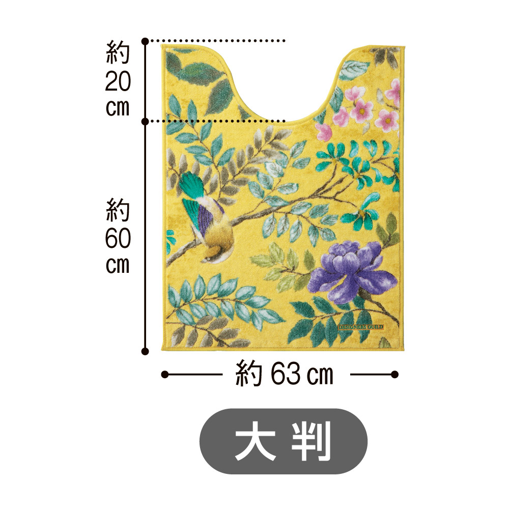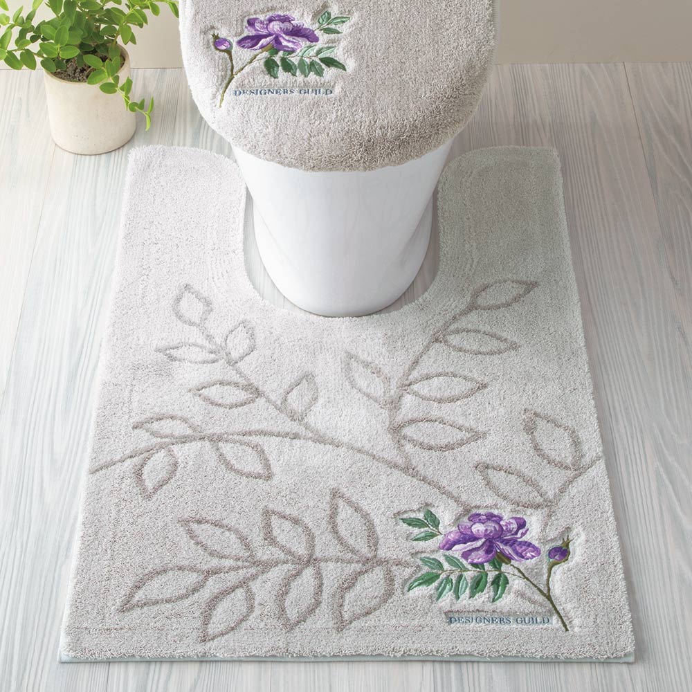 ギルド独特のタッチと色彩で描くポーセリンアート!トイレタリーが素敵空間にアンティークの陶磁器(ポーセリン)からインスピレーションを得た花鳥の絵画を、鮮やかな発色で表現したデザイナーズ・ギルドのトイレタリー〈ポーセリン〉。華やかな明るさの中に深みを感じるイエローと、シックな色合いにあでやかさが優るグレーの個性的な2色。ギルドの新たな世界が広がります。なめらかで柔らかな質感で心地よい踏み心地のトイレマット。花鳥の輪郭には毛足をわずかに短くカットし立体的に仕上げました。クラシカルでモダンなデザインが、足元をリッチに彩ります。抗菌防臭・吸水素材のうれしい清潔仕様。
