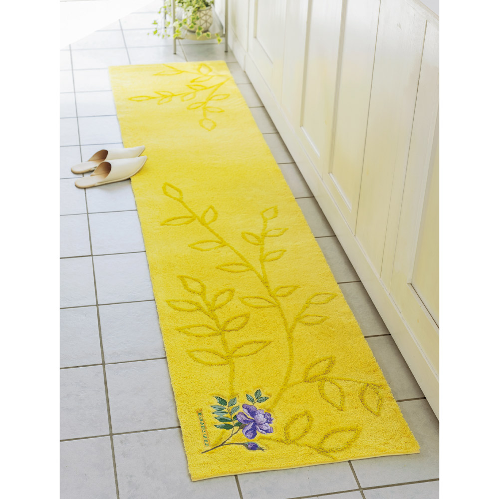 (ア)イエローシシュウ(写真は約50×240cm) 上品な仕上がりで、キッチンはもちろんソファやドレッサー前、ベッドサイドなどインテリアマットとしても。
