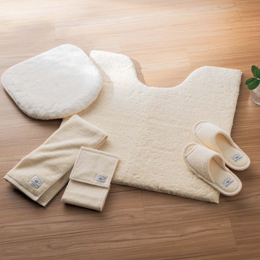 クッションのような弾力がくせになりそう。もっちりとした感触で足裏はいつもサラサラ。サイズも豊富なトイレマットです。高密度に植毛したマイクロファイバーを使用。毛羽落ちが少なく、吸水・速乾性のある素材です。密度の高いマイクロファイバー素材で弾むような心地よい踏み心地が特長。吸水・速乾性にも優れています。飽きのこないシンプルな無地デザインで、水まわりがすっきりとまとまります。※こちらは【トイレマット】のページです。以下のシリーズ品は関連商品からお求めいただけます。フタカバー/ペーパーホルダーカバー/タオル同色2枚セット/スリッパ1足/バスマット【ポイント1】お手入れ簡単高密度のマイクロファイバーによりゴミが奥まで入りにくく、しかも毛羽落ちが少ないので、お手入れも簡単です。【ポイント2】裏面は滑りにくい加工裏面には滑りにくい加工が施されていますので、ズレにくく快適にご使用いただけます。【ポイント3】丸洗いOK洗濯機で丸洗いできますので、いつも清潔に使えます。吸水・速乾性に優れ、お洗濯後の乾きも早くて便利。※洗濯機でお洗濯する場合は必ずネットをご使用ください。※乾燥機・ドラム式洗濯機は使用できません。