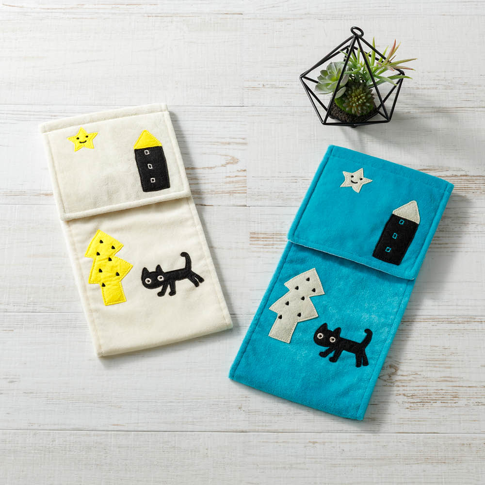 俣野温子さんの遊び心が楽しい、ペーパーホルダーカバーです。やわらかな素材感と、黒猫MEMEBEBEのワンポイントが魅力。同シリーズのマットやふたカバーと揃えて、使うたびに思わず笑顔になるトイレ空間をお楽しみください。心ときめくインテリアが楽しめる<アツコマタノ>シリーズ遊び心とぬくもりに満ちた<アツコマタノ>の世界。トイレタリーはもちろん、スリッパやキッチンマット、バスマットなど、毎日の暮らしにときめきを添えるアイテムを取り揃えました。独自の世界観で暮らしを彩る、アツコマタノのインテリアファブリック作家・画家・デザイナーとして幅広いファンに愛される総合クリエーター・俣野温子。素材選びから色づかい、パターンの細部までこだわり、日々の暮らしを彩る独自の世界観を発信し続けています。